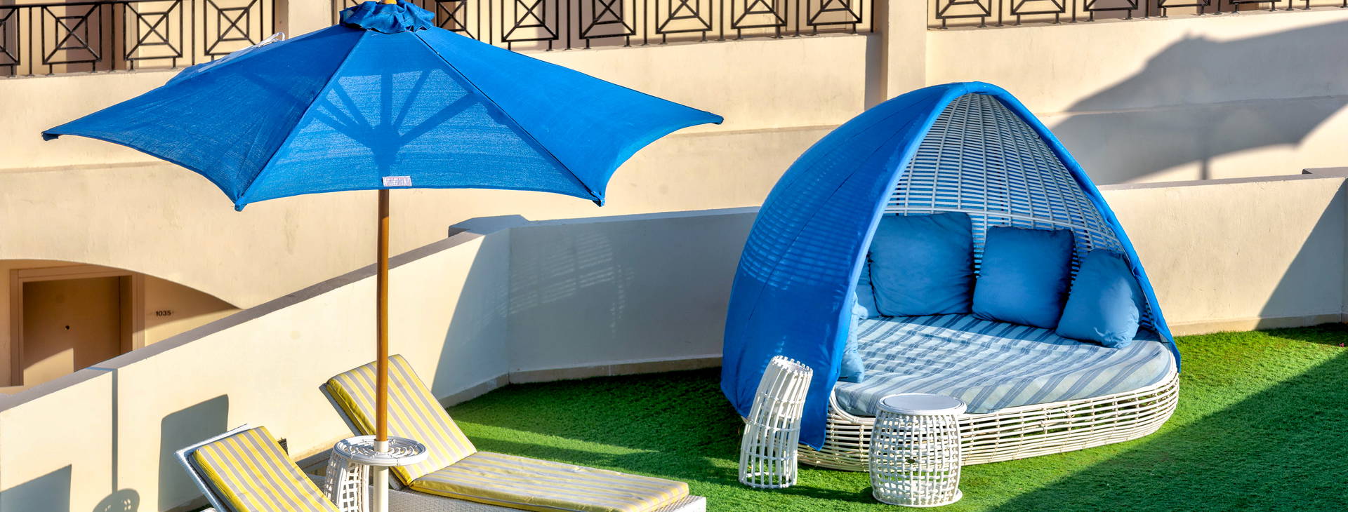 Hotel sa nachádza priamo na širokej piesočnatej pláži v zálive Macadia. Na súkromnej pláži sa nachádza plytčina s úlomkami koralového útesu a mólom vychádzajúcim do mora. Plážový servis (ležadlá, matrace a slnečníky) je pre hotelových hostí k dispozícii zadarmo.