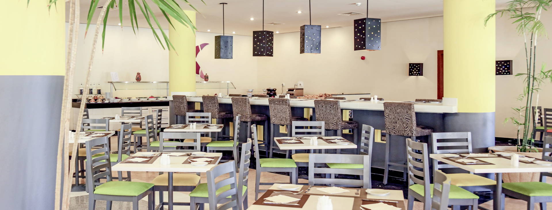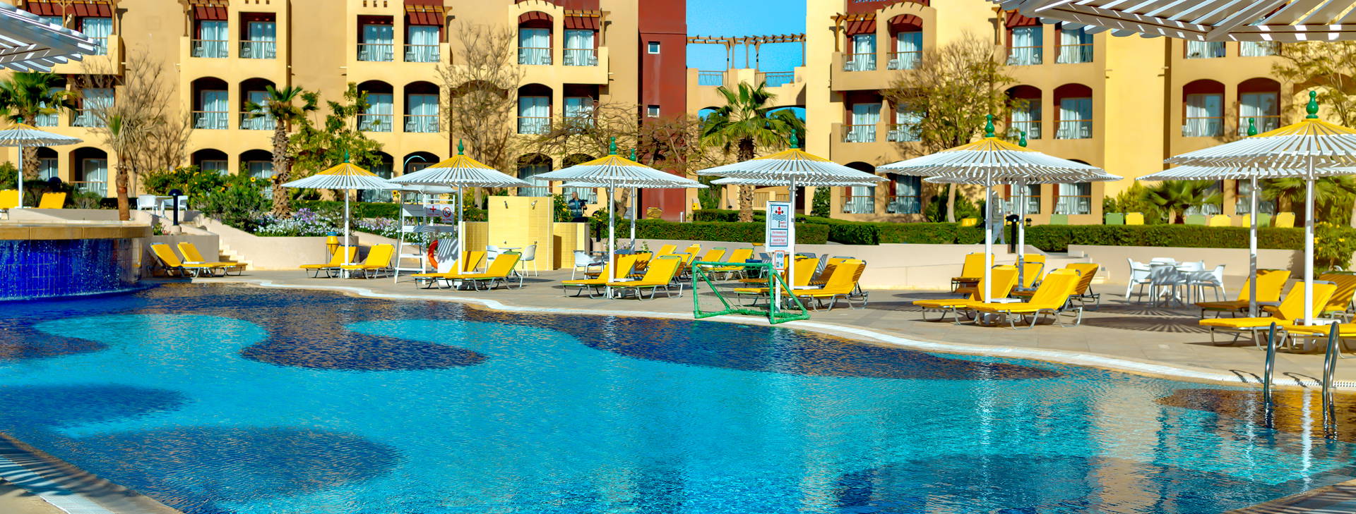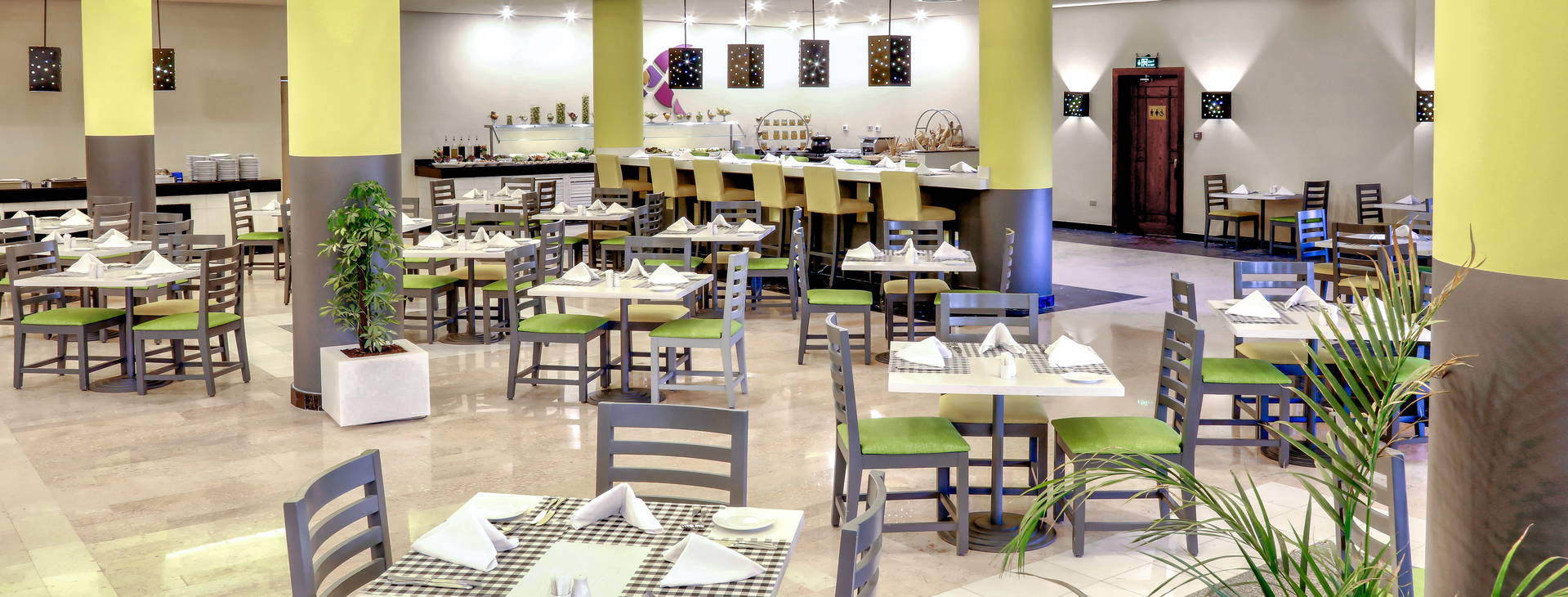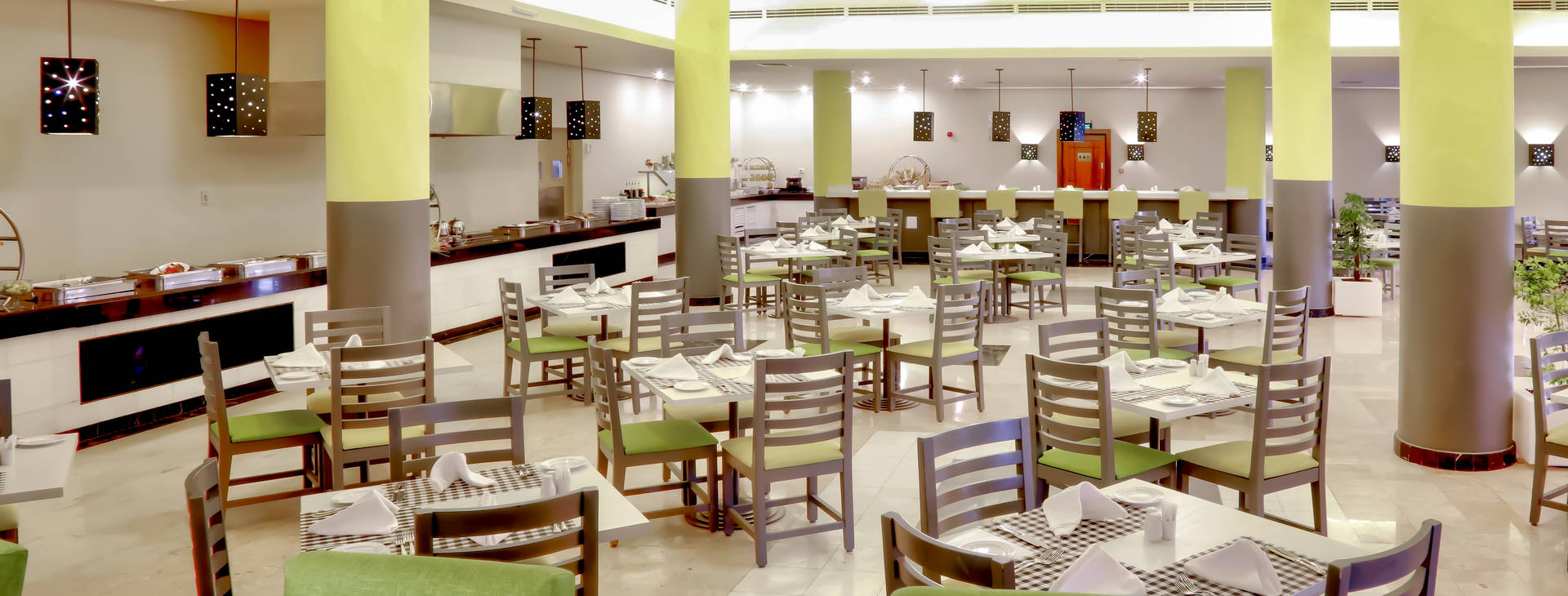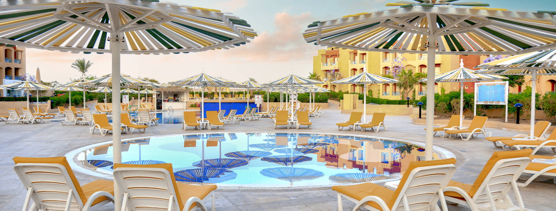All inclusive: raňajky (06:30-10:00), neskoré raňajky (10:00-11:00), obed (12:00-15:00), občerstvenie (15:00-17:00) a večera (18:30-22:00) podávané formou bufetu v hlavnej reštaurácii Zesty, vybrané miestne nealkoholické a alkoholické nápoje podávané v určených baroch (10:00-00:00). Raz počas pobytu večera vo vybranej reštaurácii na promenáde Makadi (nutná rezervácia vopred). Hotel si vyhradzuje právo na zmenu rozsahu služieb zahrnutých vo vzorci all inclusive (napr. čas podávania).