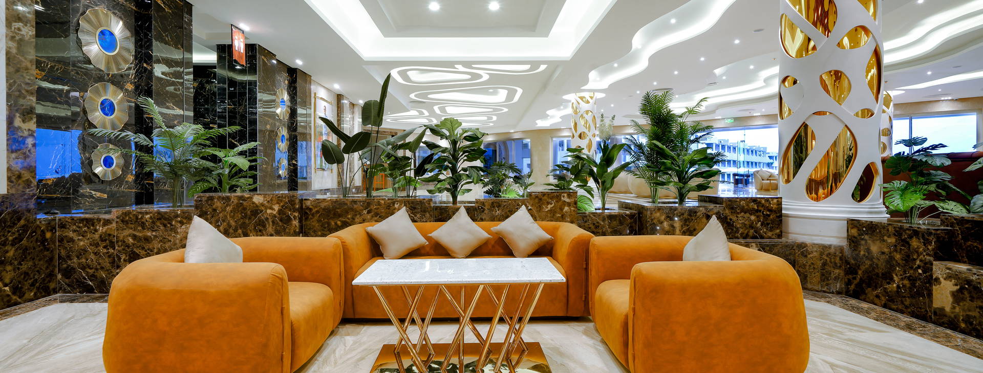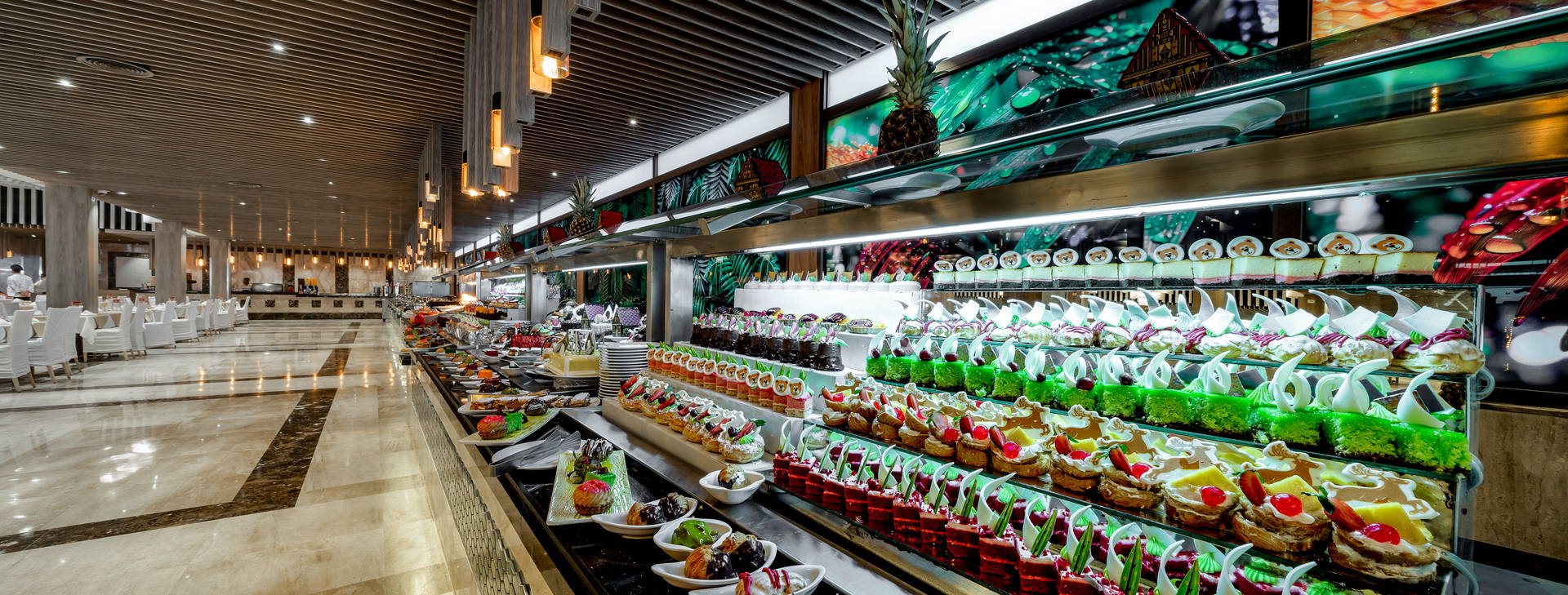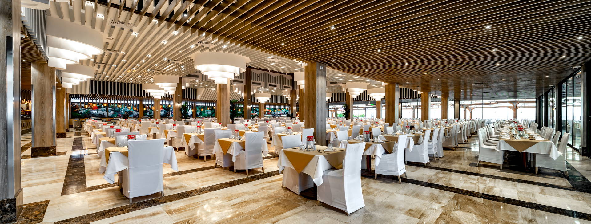 24-hodinová recepcia, recepčný, bezbariérový prístup, hlavná reštaurácia, reštaurácia ala carte (otvorená len v lete, za príplatok), lobby bar, 2 bary pri bazéne (z toho 1 len pre dospelých), plážový bar, 5 bazénov pre dospelých (2 z nich sú v zime vyhrievané), detský bazén vyhrievaný v zime, posilňovňa (18+). Za príplatok: prenájom limuzíny, lekár, práčovňa a čistiareň, obchody (vrátane fotoobchodu), kúpele s vírivkou pre dospelých, detský bazén , sauna, masáže, turecké kúpele, soľná jaskyňa a salón krásy a kaderníctvo.