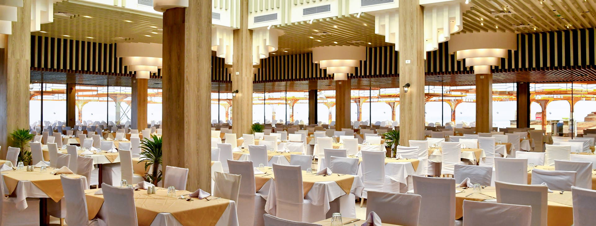All inclusive: raňajky (7:00-10:00), obed (13:00-15:00) a večera (19:00-22:00) podávané formou bufetu v reštaurácii Sirena. Neskoré raňajky sa podávajú v plážovom bare (10:00-12:00). Pizza sa podáva denne od 11:00-18:00 v plážovom bare Panorama a ďalšie občerstvenie sa podáva od 11:00 do západu slnka v plážovom bare Panorama. Všetky nápoje sa podávajú na poháre a vo vybraných baroch a reštauráciách sa podáva minerálna voda, nealkoholické nápoje (okrem čerstvých ovocných štiav), miestne pivo, miestne víno, miestne destiláty (gin, vodka, whisky, rum, ouzo a brandy) a horúce nápoje, ako je káva, čaj alebo horúca čokoláda. Hotel si vyhradzuje právo na zmenu rozsahu služieb zahrnutých do formulky all inclusive (napr. čas podávania).