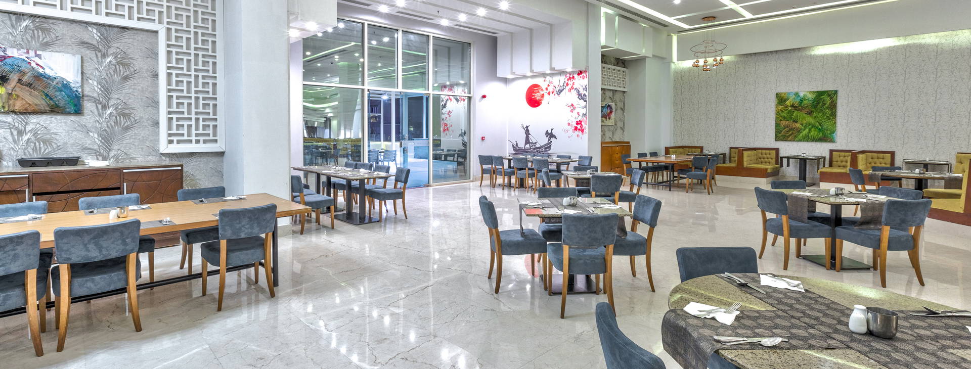 All Inclusive: raňajky (07:00-10:00), obed (12:30-14:30) a večera (19:00-21:30) podávané formou bufetu. Okrem toho: neskoré raňajky (10:00-11:00), občerstvenie a zmrzlina (12:30-16:00) a večerné občerstvenie (22:00-24:00) vo vybraných reštauráciách a baroch. Miestne alkoholické a nealkoholické nápoje (10:00-24:00) vo vybraných reštauráciách a baroch. Nápoje, fľaškové a plechovkové nápoje a importované alkoholické nápoje za príplatok. Hotel si vyhradzuje právo na zmenu rozsahu služieb zahrnutých vo vzorci all inclusive (napr. čas podávania).