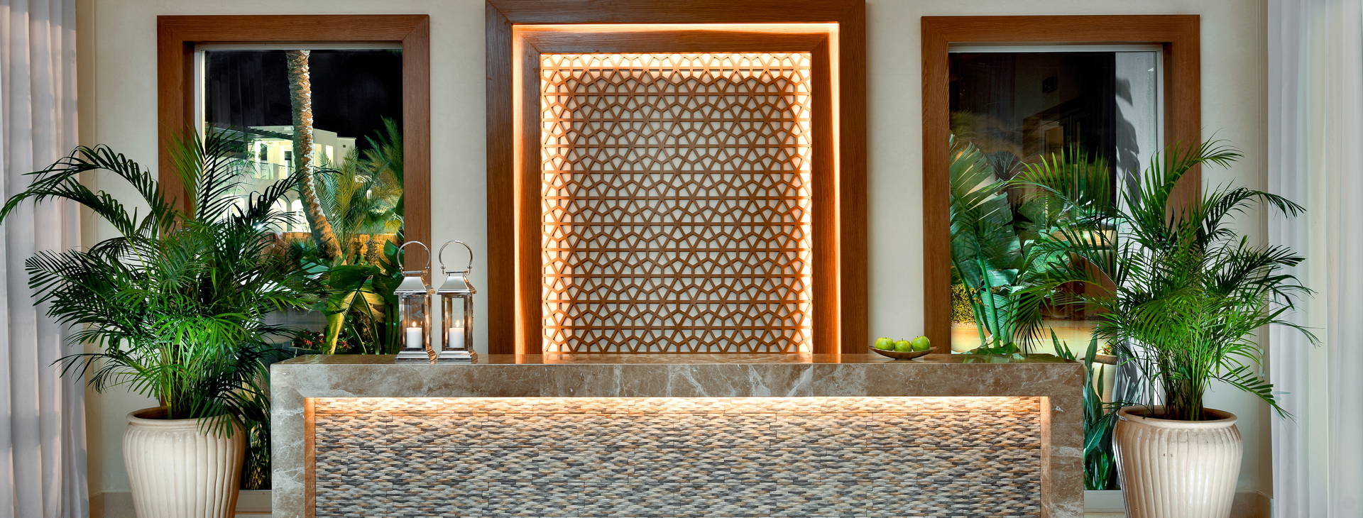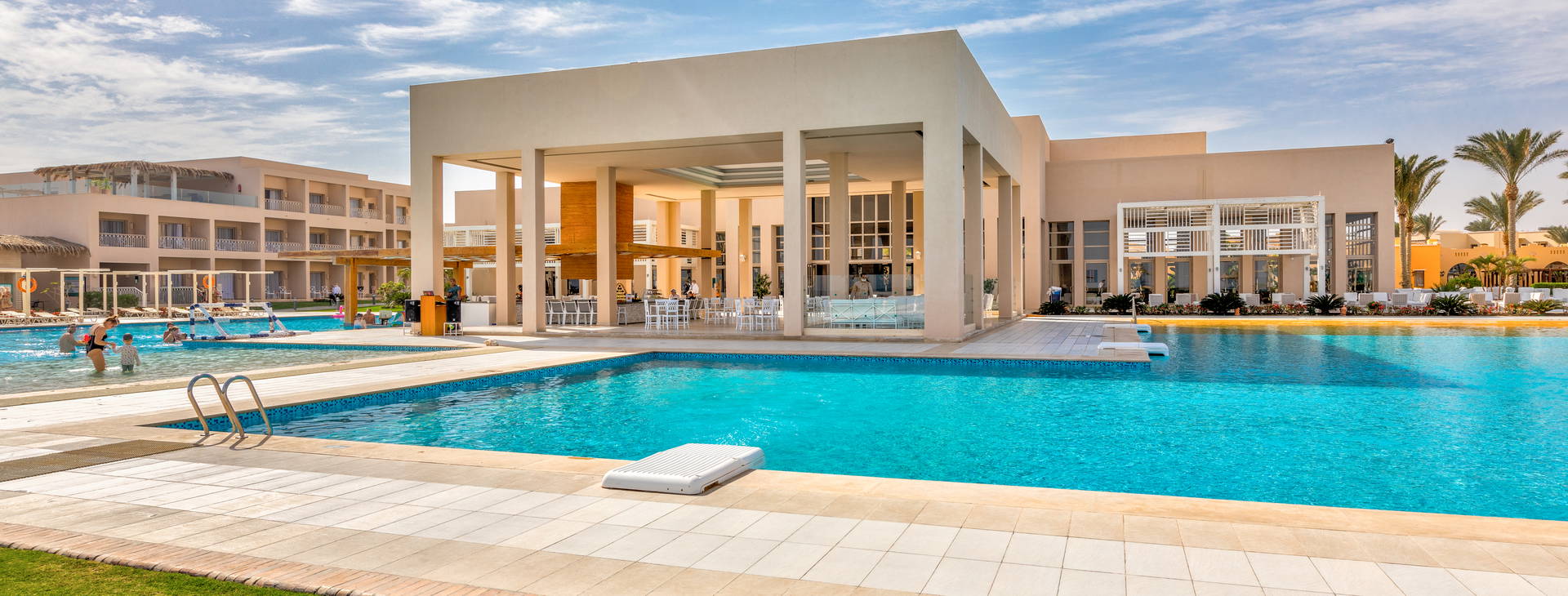 .Budova s veľmi zaujímavou architektúrou. V areáli hotela: 24-hodinová recepcia, lobby, obchody so suvenírmi, 4 bary (pri bazéne, na pláži, v lobby, na streche "Breeze"), hlavná reštaurácia "Yummy" a a'la carte reštaurácia (platená, nutná rezervácia), 2 hlavné bazény a 1 detské brodítko (v zimnej sezóne vyhrievané). Za príplatok: práčovňa, lekáreň, wellness centrum a možnosť využívať atrakcie Medinat Coraya (bary, reštaurácie, aquapark).