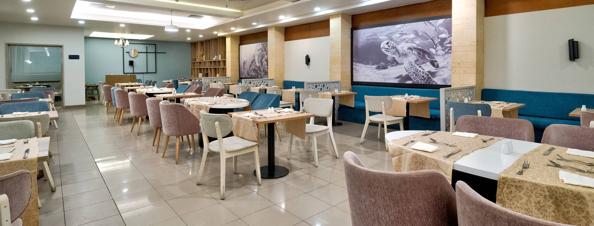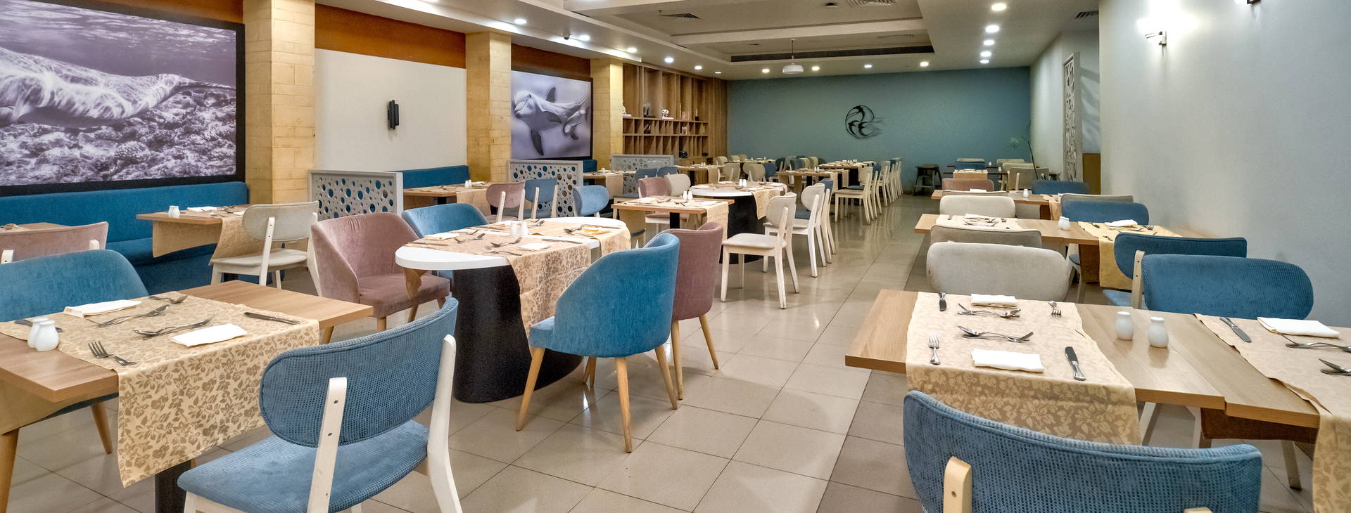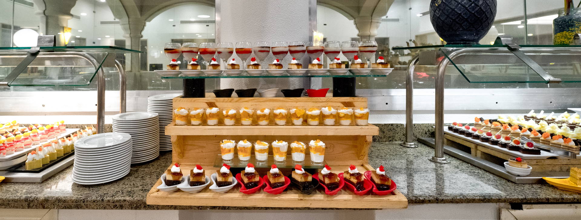 All Inclusive: raňajky (7:00-10:00), neskoré raňajky (10:00-11:00), obedy (12:30-14:30), večere (18:30-21:30) formou bufetu, občerstvenie v bare v aquaparku a na pláži (12:00-17:00), nealkoholické nápoje, teplé nápoje, miestne alkoholické nápoje v pohári, ktoré si môžete zakúpiť k jedlám v hlavnej reštaurácii a vo vybraných baroch (10:00 do západu slnka). Dovážané alkoholické nápoje a čerstvé šťavy za príplatok. Denne dopĺňané 2 fľaše minerálnej vody na izbe, fľaša miestneho vína a košík s ovocím a regionálnym pečivom na privítanie na izbe.