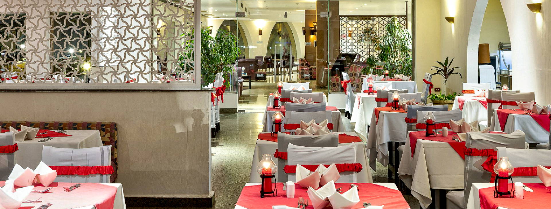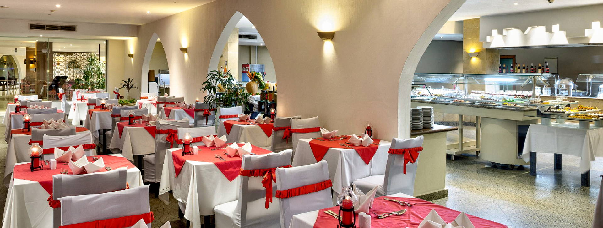 All Inclusive: raňajky (07:00-10:00), obedy (12:30-14:30) a večere (18:30-21:30) podávané formou bufetu (medzinárodná kuchyňa, detské menu). Plus: neskoré raňajky (10:00-11:30), občerstvenie (14:30-16:00) a sladké občerstvenie (16:00-17:00), miestne alkoholické a nealkoholické nápoje (10:00-24:00) podávané v určených baroch. Čerstvé šťavy, dovážané liehoviny a minibar - za poplatok.