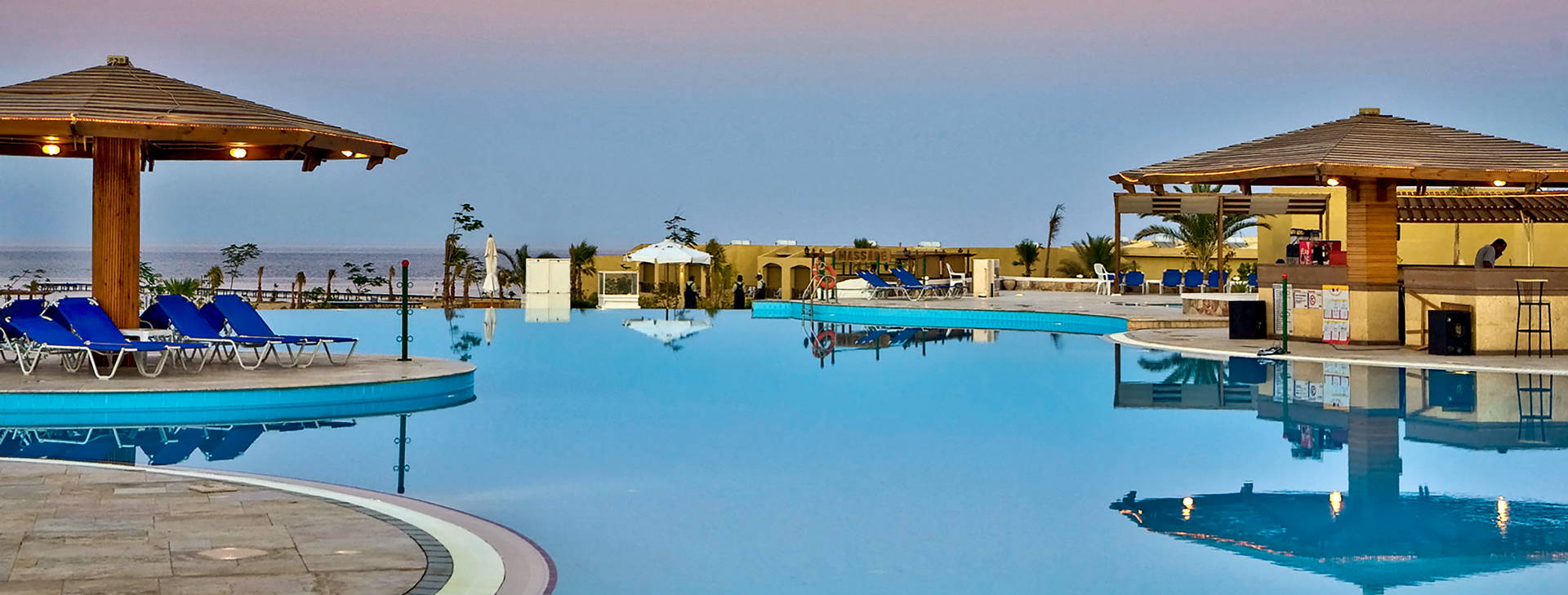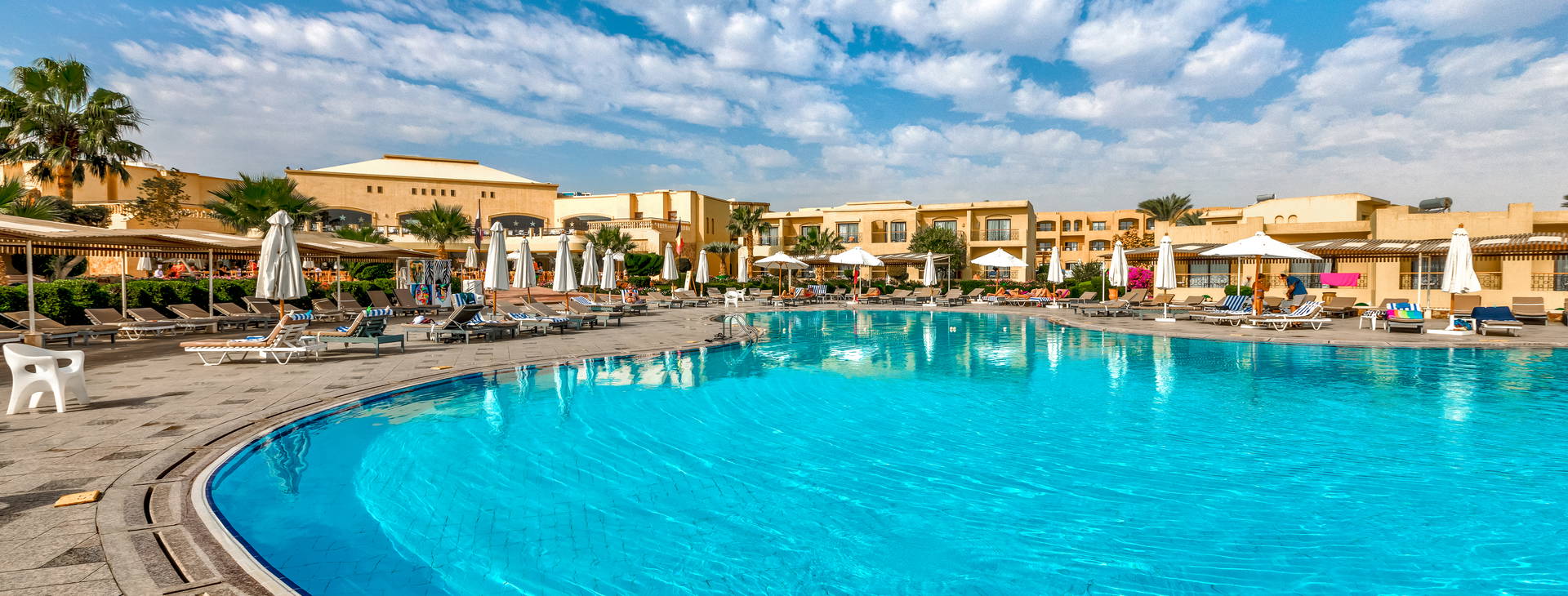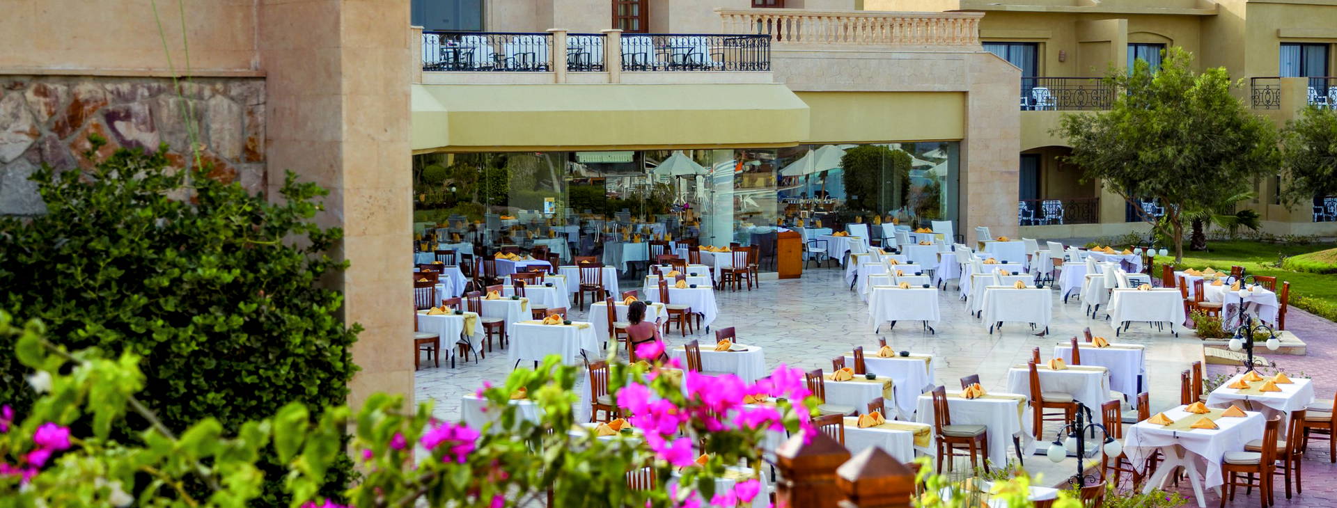 Štyrihodinová recepcia, bankomat, práčovňa, lekáreň, obchod so suvenírmi, minimarket, kaderníctvo. Hotel má 4 reštaurácie - hlavnú Panorama (bufetové jedlá), plážovú Lagoona, a'la carte Chez Pascal a egyptskú Marhaba, ako aj niekoľko barov: lobby bar, bar pri bazéne a bar na pláži. Hostia môžu využívať 2 vonkajšie bazény (1 v zime vyhrievaný) a detské brodítko, ktoré obklopuje rozsiahla slnečná terasa. Ležadlá, slnečníky a osušky pri bazénoch - zdarma.