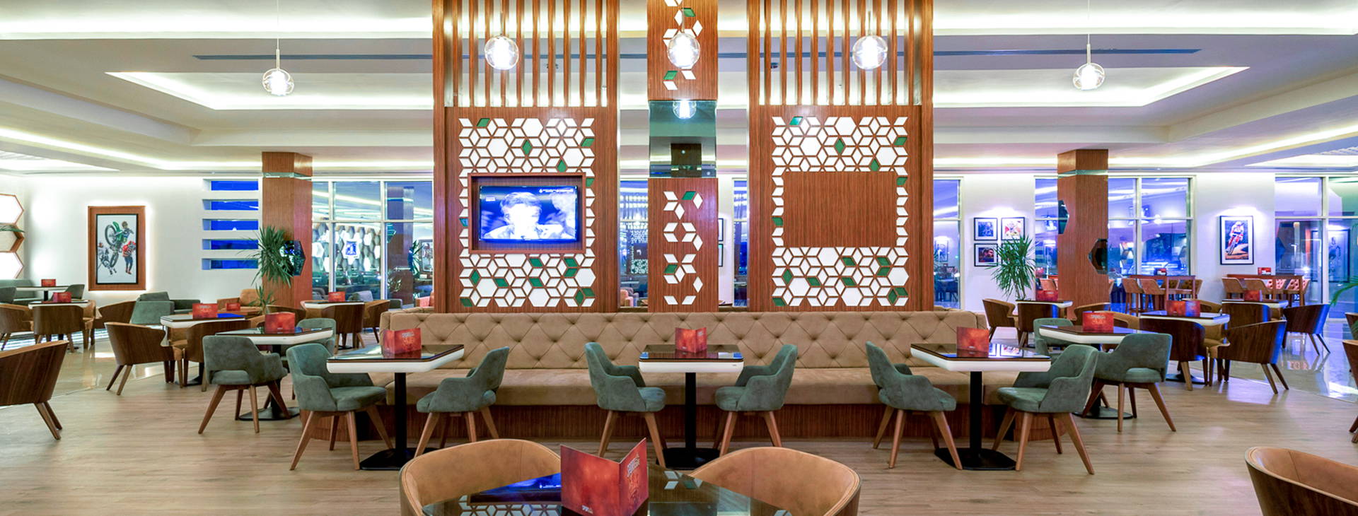 All Inclusive: raňajky (07:00-10:00), obed (12:30-14:30) a večera (19:00-21:30) podávané formou bufetu. Okrem toho: neskoré raňajky (10:00-11:00), občerstvenie a zmrzlina (12:30-16:00) a večerné občerstvenie (22:00-24:00) vo vybraných reštauráciách a baroch. Miestne alkoholické a nealkoholické nápoje (10:00-24:00) vo vybraných reštauráciách a baroch. Nápoje, fľaškové a plechovkové nápoje a importované alkoholické nápoje za príplatok. Hotel si vyhradzuje právo na zmenu rozsahu služieb zahrnutých vo vzorci all inclusive (napr. čas podávania).