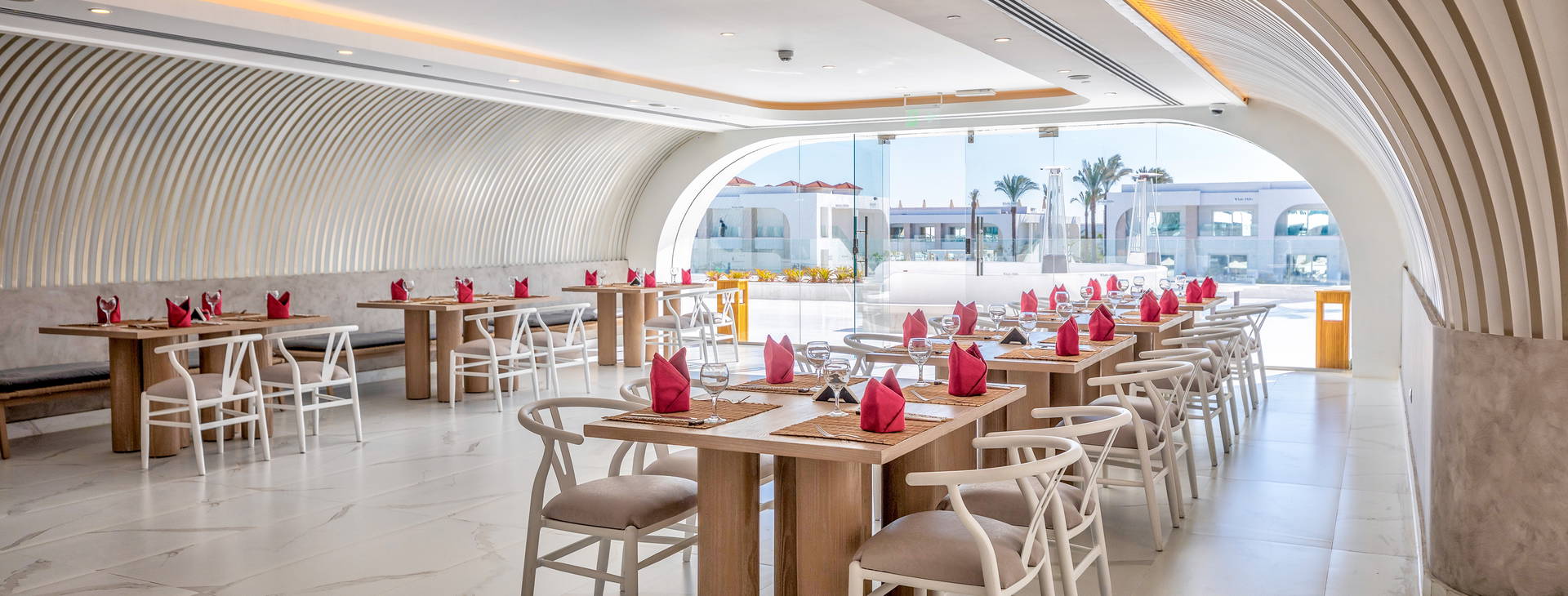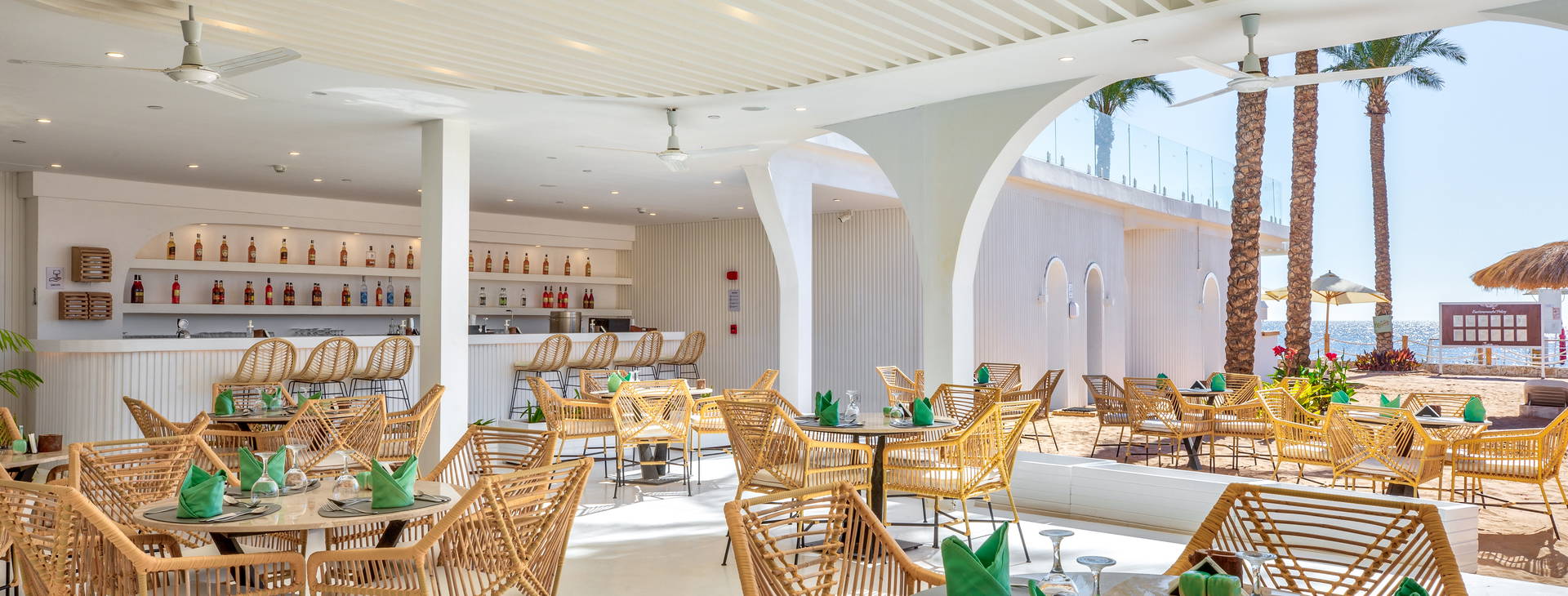 All inclusive 24 hodín denne, zahŕňa miestne alkoholické a nealkoholické nápoje. Za príplatok môžu byť k dispozícii fľaškové nápoje podávané v hotelových baroch (min. 1 bar otvorený 24 hodín denne). V reštauráciách a la carte je potrebná rezervácia vopred. Voľne prístupné reštaurácie podávajúce jedlá egyptskej, ázijskej a stredomorskej kuchyne. Reštaurácie s morskými plodmi za príplatok. Reštaurácia Le Posh len pre členov Royal Club. Občerstvenie počas dňa vo vybraných baroch v hoteli.