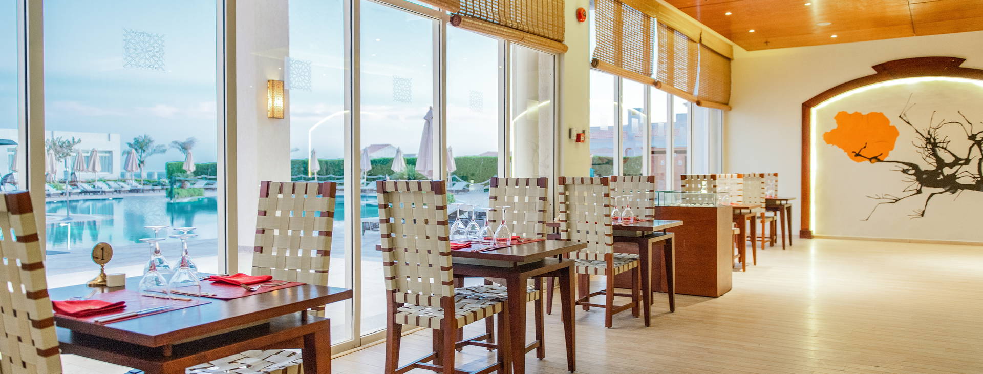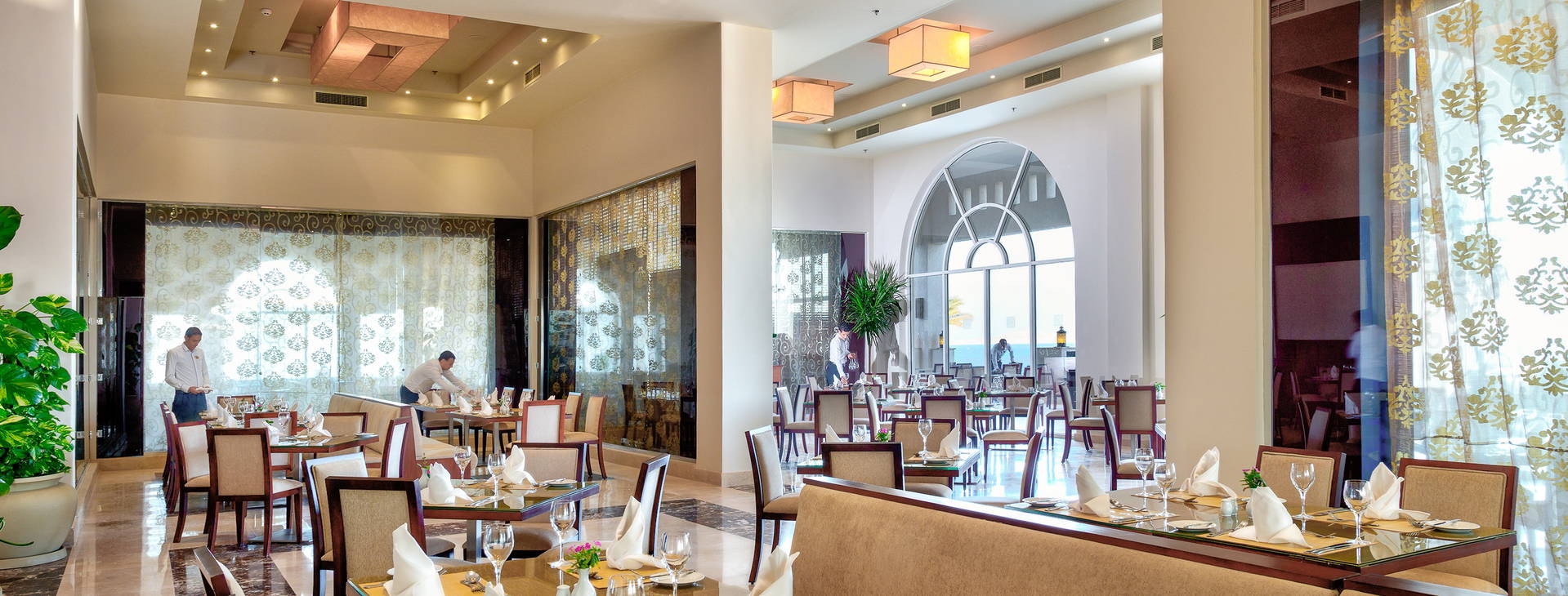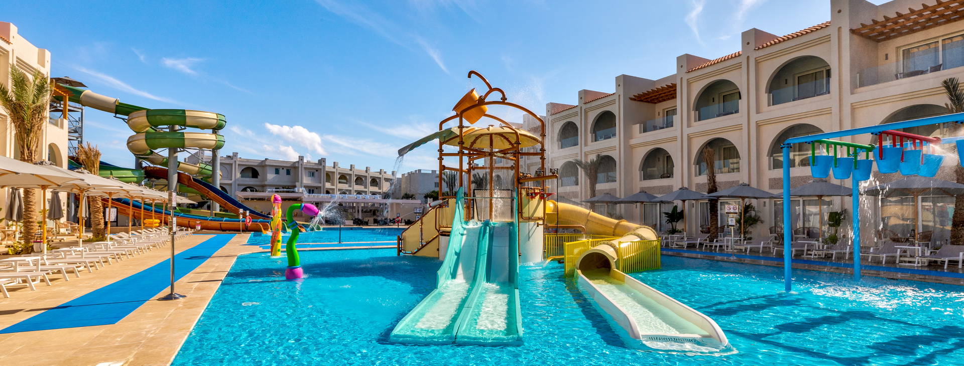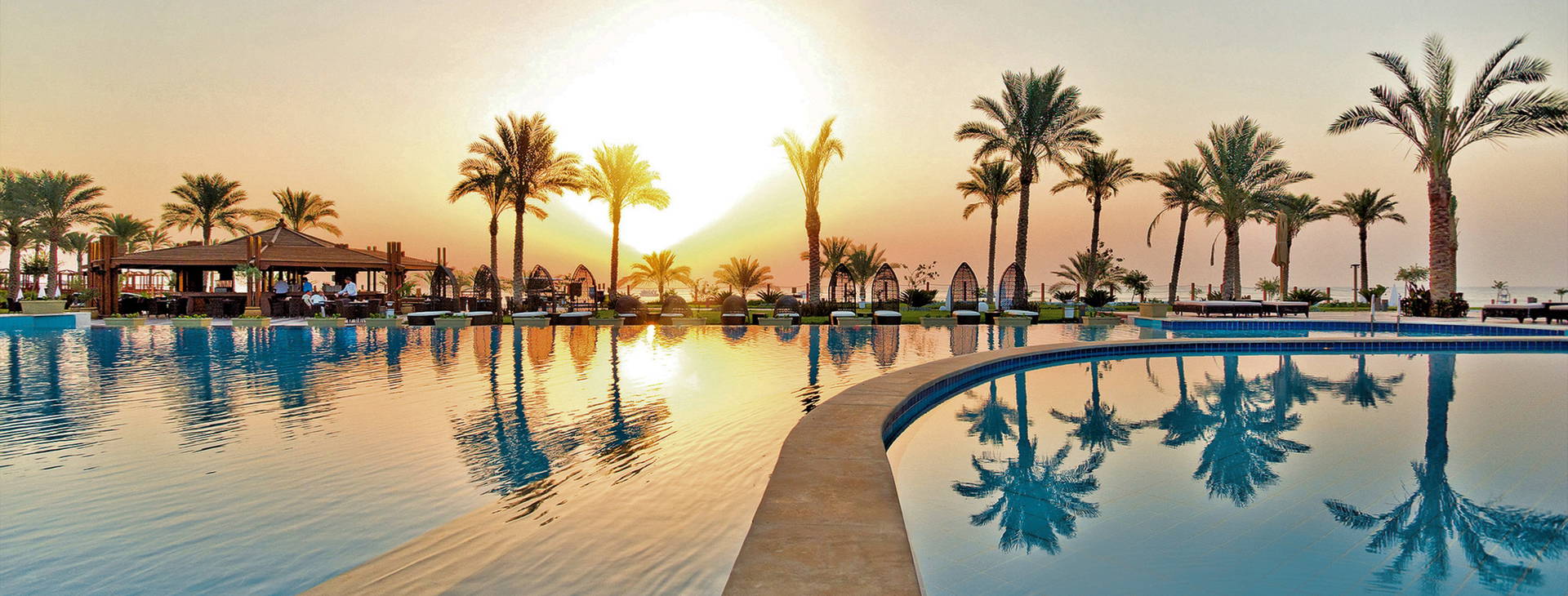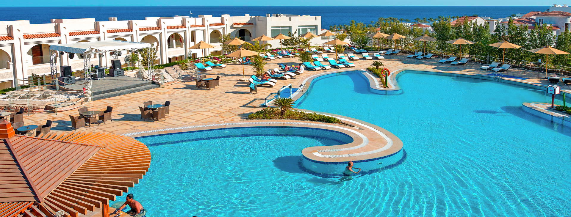 All inclusive: raňajky formou bufetu (7.00-10.30), obed formou bufetu (12.30-14.30), večera formou bufetu (18.30-22.00) v reštaurácii Horizon (medzinárodná kuchyňa). Hostia môžu po predchádzajúcej rezervácii využiť aj reštauráciu a la carte (talianska kuchyňa, ázijská kuchyňa, egyptská kuchyňa, diétna kuchyňa, steak house) v čase 18.30 - 22.00 hod. Gril reštaurácia otvorená od 19.00 do 22.30 hod. Ďalšia platená a la carte reštaurácia Felucca s jedlami z rýb a morských plodov a sushi v ázijskej reštaurácii. Občerstvenie sa podáva v bare v aquaparku a v bare pri bazéne od 12.00 do 17.00 hod. Polnočné občerstvenie (23.00 - 01.00) v lobby bare. (Vybrané nealkoholické a alkoholické nápoje sa podávajú v baroch v areáli hotela. Ostatné bary sú otvorené od 10.00 do 17.00 /18.00 hod. Splash bar pri bazéne otvorený tiež od 18.30 do 22.00 hod. Hotel si vyhradzuje právo na zmenu rozsahu služieb zahrnutých vo vzorci all inclusive (napr. časy podávania jedál).