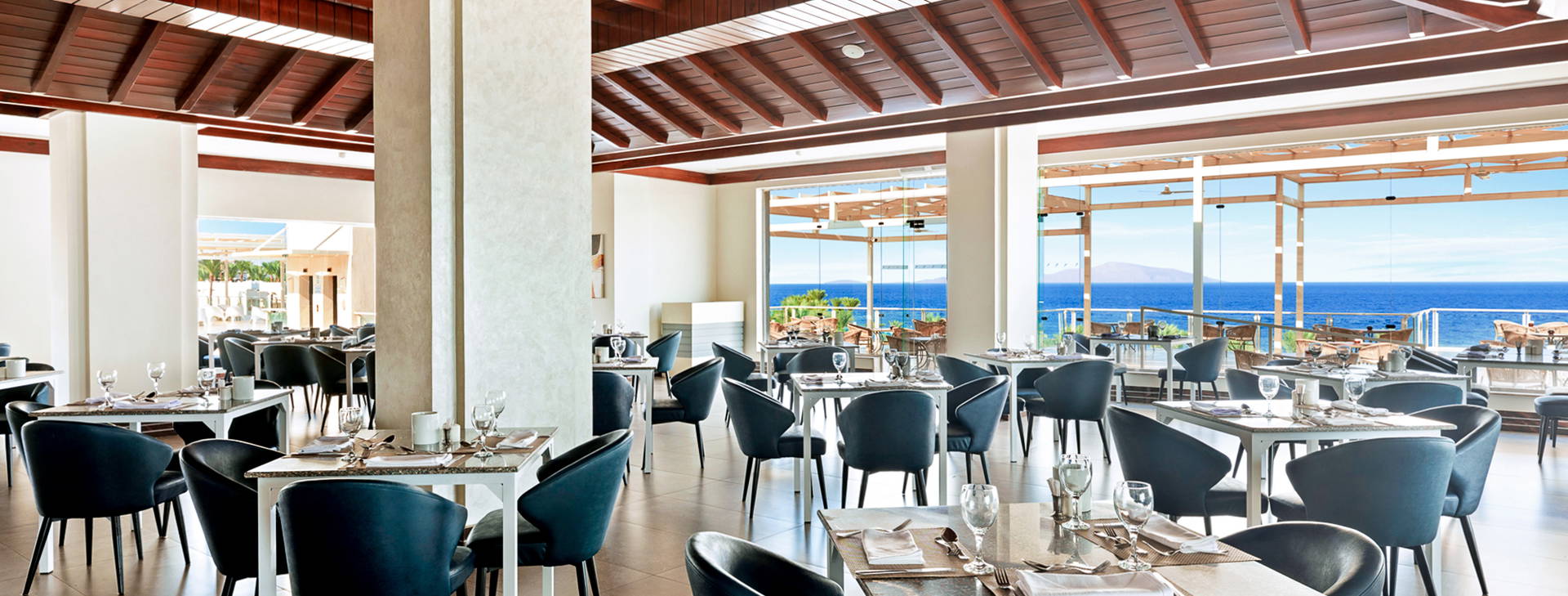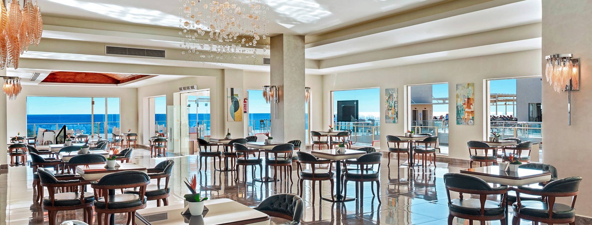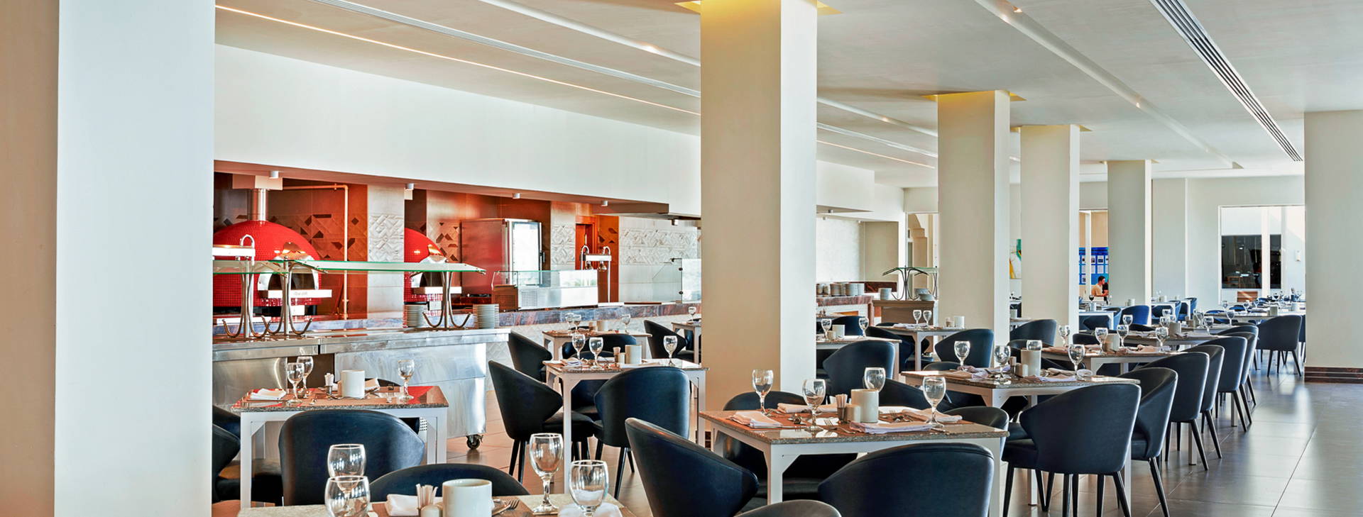 .All inclusive: raňajky, obedy a večere formou bufetu v hlavnej reštaurácii Soprano. K dispozícii je aj stredomorská reštaurácia a la carte. Hostia môžu využívať bary: lobby bar 24/7, olympus bar (18:00-00:00), bar pri bazéne a bar na pláži (10:00-do západu slnka)Vybrané nealkoholické a alkoholické nápoje v baroch: pri bazéne, na pláži, v lobby, v športovom bare, v bare Pub a v bare Red Sky. Zmrzlina vo vybraných baroch.