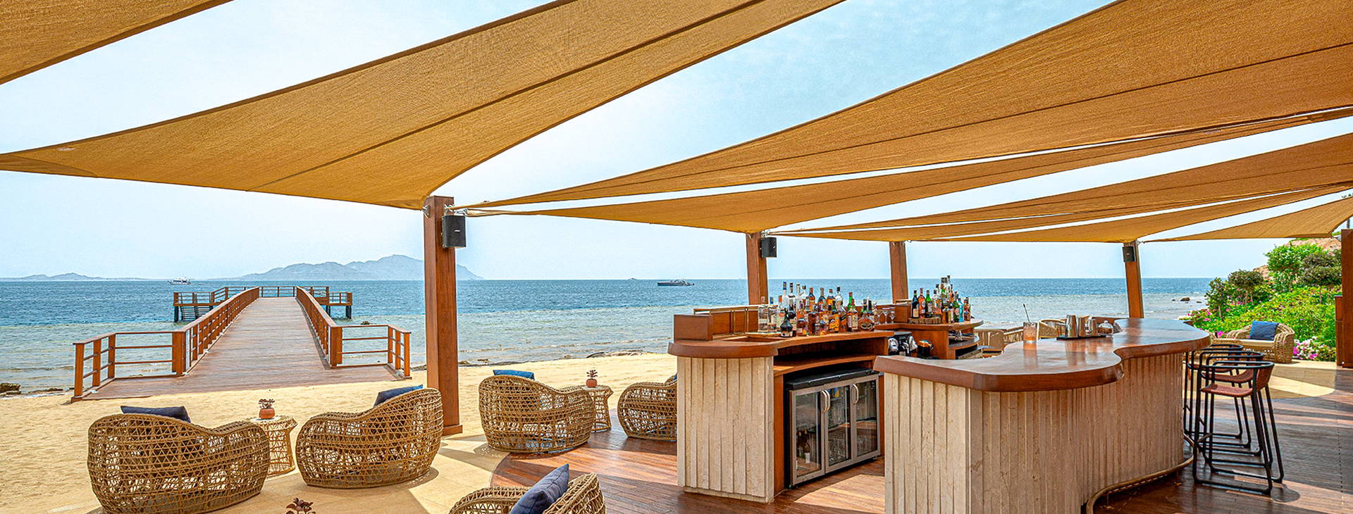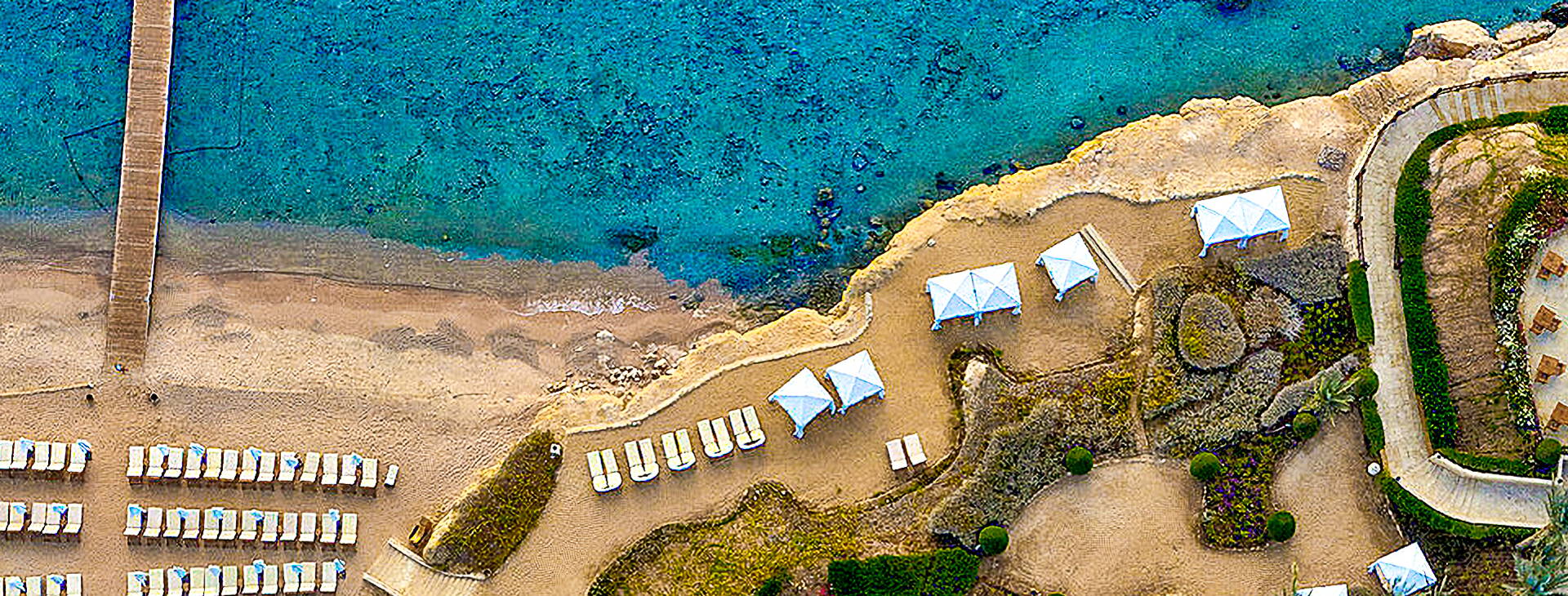 Komplex sa nachádza na súkromnej piesočnatej pláži dlhej približne 1 km s mólom dlhým približne 500 m, z ktorého môžete obdivovať bohatý podmorský svet. Ležadlá, slnečníky a osušky sú zdarma, na pláži sú k dispozícii aj exkluzívne pavilóny na súkromné použitie (za príplatok podľa typu izby).