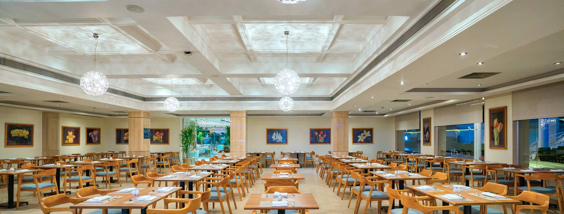 All Inclusive: raňajky (07:00-10:00), obed (13:00-15:00) a večera (19:00-22:00) formou pestrého bufetu (medzinárodná kuchyňa). Možnosť využitia a la carte reštaurácií na obed alebo večeru (nutná predchádzajúca rezervácia). Počas dňa občerstvenie a miestne alkoholické a nealkoholické nápoje podávané v špecifických baroch. Za príplatok: značkové alkoholické nápoje, čerstvo vylisované džúsy.