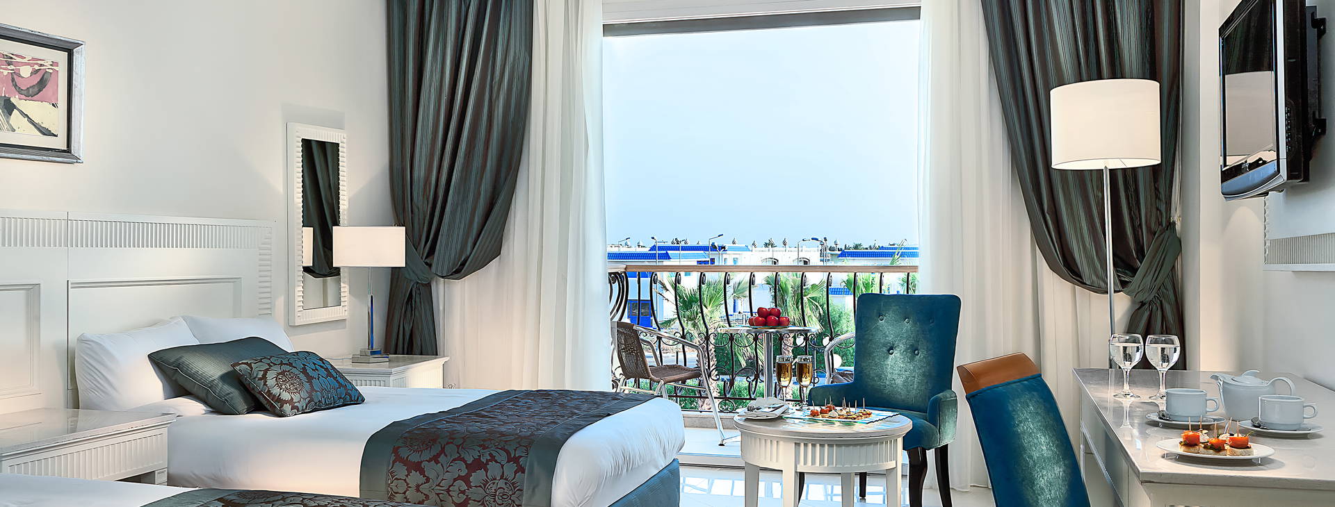All inclusive zahŕňa: raňajky (07:00-10:00), obed (13:00-15:00) a večeru (18:30-21:00) podávané formou bufetu v hlavnej reštaurácii "Giardino". Jedna bezplatná večera v a la carte reštaurácii "La Seppia" je k dispozícii na základe predchádzajúcej rezervácie pre hostí s minimálne 7 nocí pobytu v hoteli. Okrem toho je k dispozícii občerstvenie (16:00-17:00). Miestne alkoholické nápoje (vrátane vodky, ginu, rumu, whisky, tequily, brandy) a nealkoholické nápoje (voda, džúsy, káva čaj) podávané v lobby bare "Galleria" (10:00-00:00) a v strešnom bare "Terrazzina" (10:30-17:00 a 18:00-23:00). Bezplatná voda z automatu je k dispozícii v bare "Palma Beach". All Inclusive nezahŕňa: čerstvo vylisované šťavy, dovážané alkoholické nápoje, nápoje vo fľašiach a niektoré druhy kávy. Hotel si vyhradzuje právo na zmenu rozsahu služieb zahrnutých vo vzorci all inclusive (napr. čas podávania).