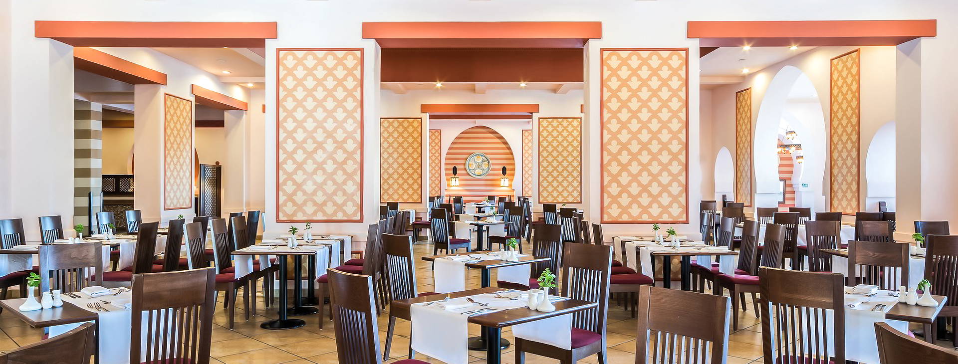 .All Inclusive zahŕňa raňajky (07:00-10:30), obed (12:30-14:30) a večeru (19:00-21:30) podávané formou bufetu v hlavnej reštaurácii. Okrem toho občerstvenie (neskoré raňajky, zmrzlina pre deti, popoludňajší čaj) podávané v bare pri bazéne v určených časoch. Miestne nealkoholické a alkoholické nápoje (09:00-24:00) sú k dispozícii v určených baroch v hoteli.