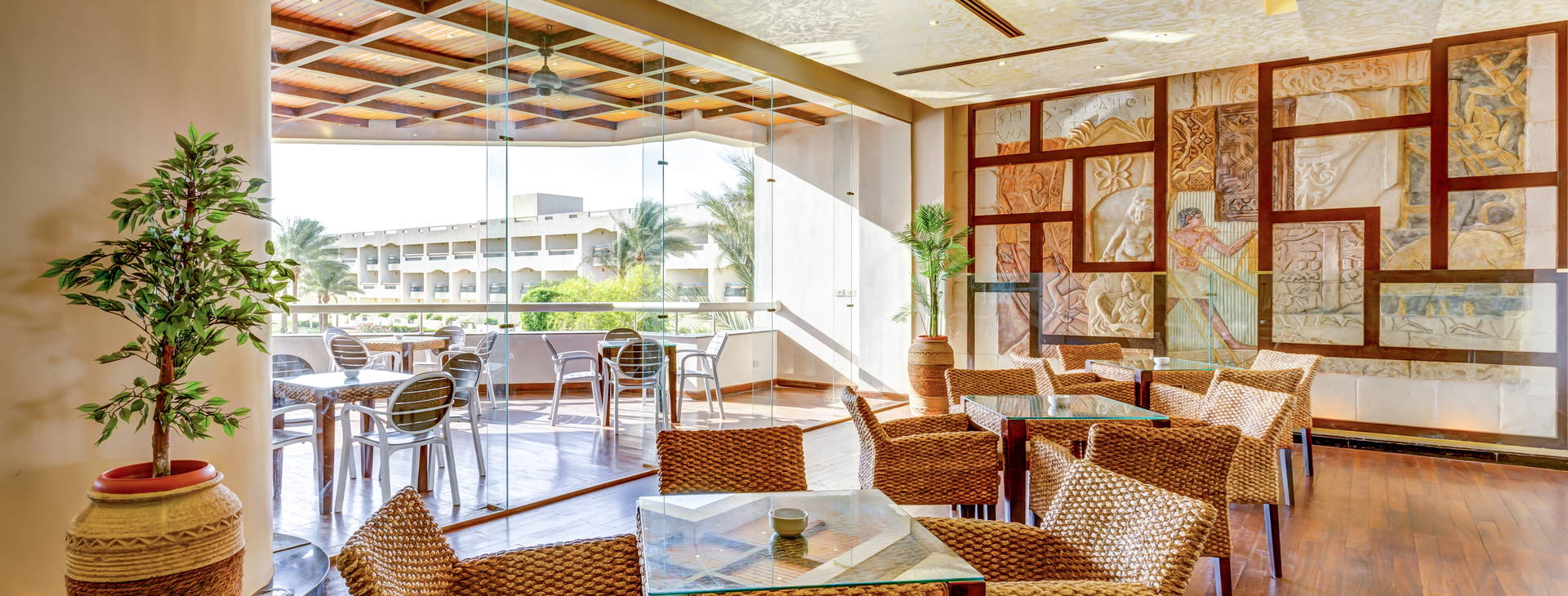.All Inclusive zahŕňa raňajky (07:00-10:00), obed (13:00-15:00) a večeru (18:30-22:00) podávané formou bufetu v hlavnej reštaurácii Marhaba. Občerstvenie v kaviarni Water's Edge pri bazéne alebo Tiran Café na pláži (11:00-16:00), popoludňajší čaj s kávou a koláčom v plážovej kaviarni (15:00-16:00), miestne nealkoholické nápoje: káva, čaj, minerálna voda, šumivé nápoje, nealkoholické koktaily a miestne alkoholické nápoje: pivo, víno, whisky a vodka (10:00-24:00).