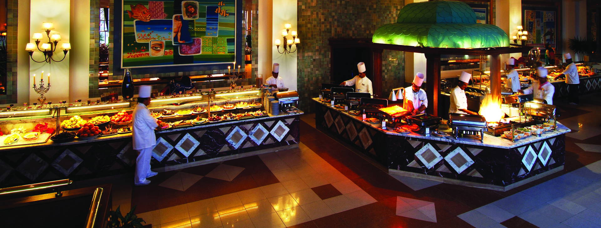 Po predchádzajúcej rezervácii si môžete vychutnať bezplatnú večeru v reštauráciách a la carte: "Taj Mahal" - indická kuchyňa, "Egyptian Restaurant" - orientálna kuchyňa, "Bella Vista Italian Restaurant" - talianska kuchyňa, "Oasis Pool Restaurant" - jedlá z morských plodov, "Oasis Pool Restaurant & Bar" - barbecue. Premium All Inclusive zahŕňa: jednu polievku, jedno hlavné jedlo a jeden dezert. Ďalšie jedlá sú za príplatok.