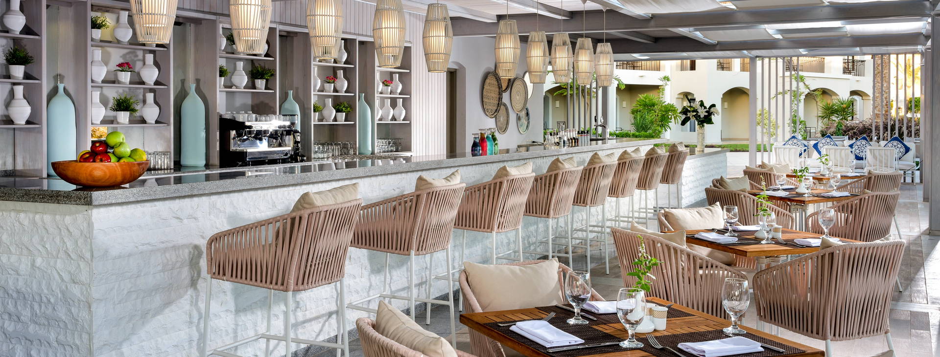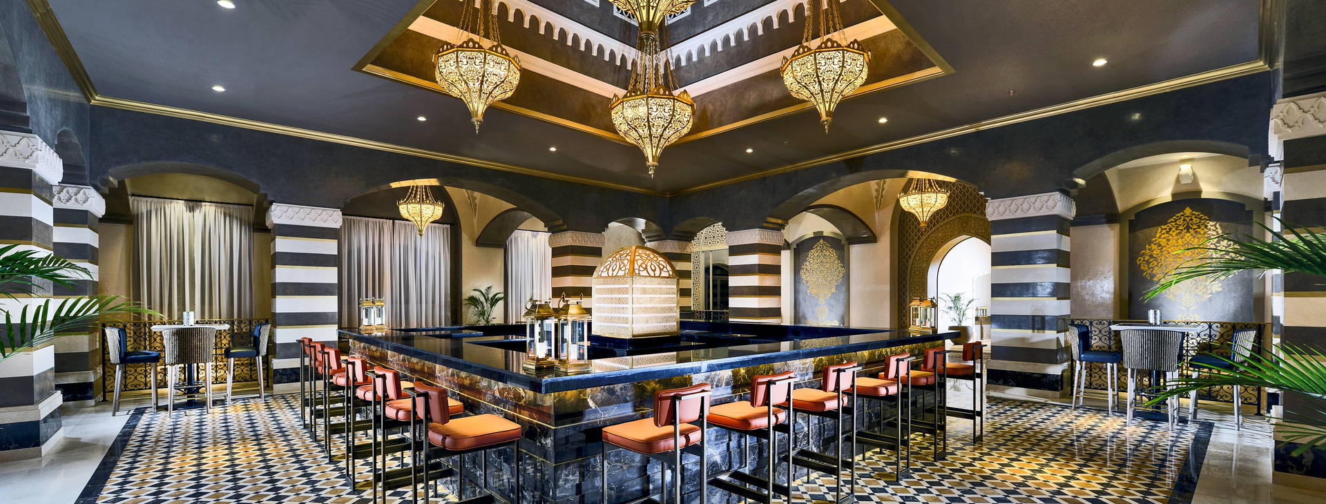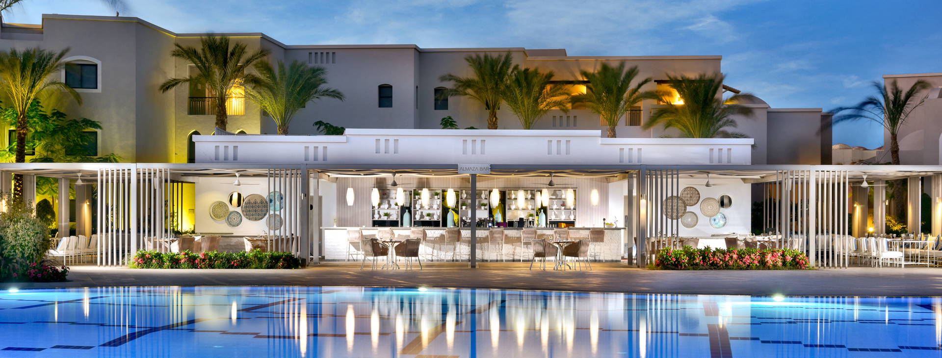 Miestne nealkoholické a alkoholické nápoje sa podávajú v mnohých baroch: Bar Marha vo vstupnej hale (24 h), bar Cazar vo vstupnej hale (19.00 - 01.00), bar Amoura pri bazéne (10.00 - 02.00), bar Almaza pri bazéne (10.00 - 17.30), bar Adults Pool (pre dospelých, 10.00 - 17.30), bar pri bazéne (pre dospelých, 10.00 - 17.30).00 - 17.30), Sanafir Bar pri pláži (10.00 - 22.30).