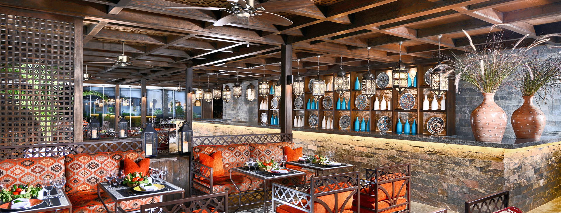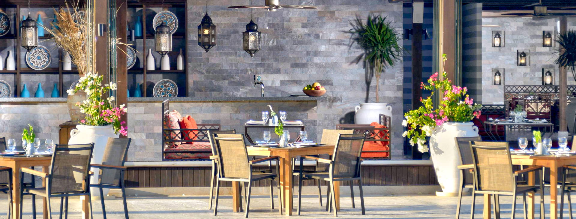 Miestne nealkoholické a alkoholické nápoje sa podávajú v mnohých baroch: Hama - japonská kuchyňa, Limoni - talianska kuchyňa, Amoura - libanonská kuchyňa, Sanafir - jedlá z morských plodov (jedlá z homára za príplatok), La Maison - stredomorská kuchyňa.