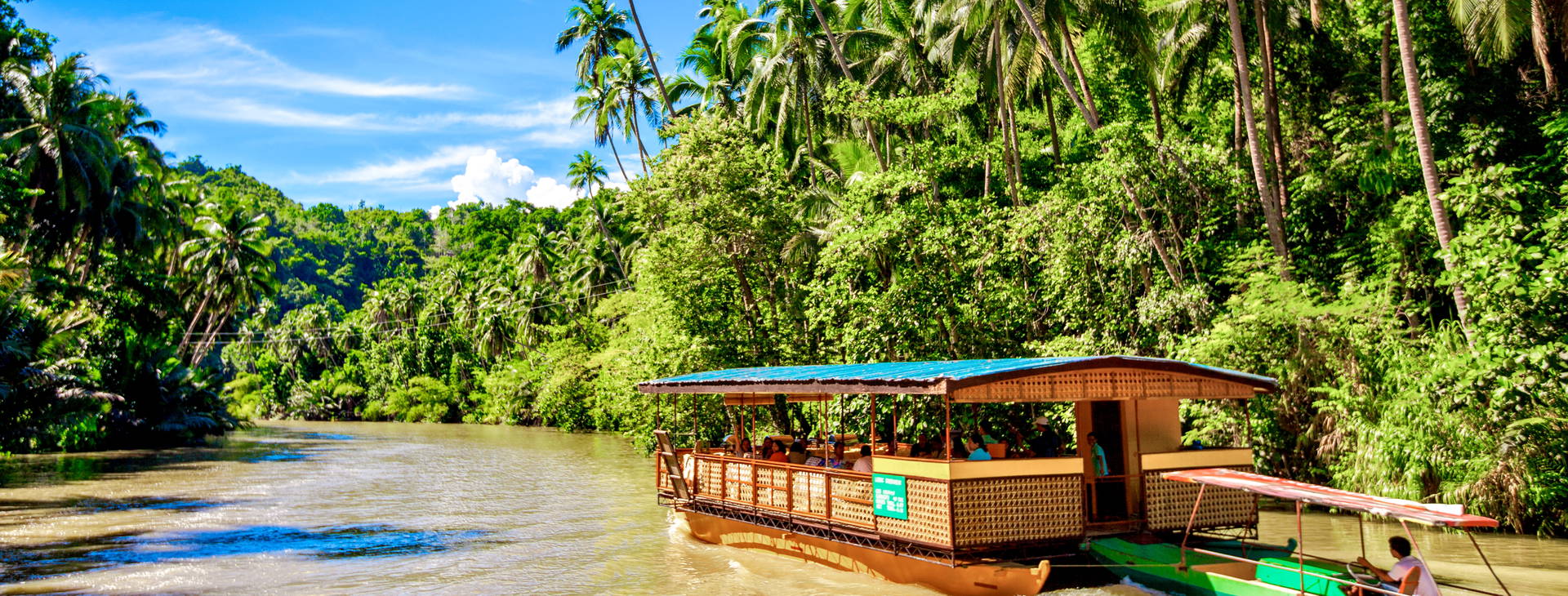 Po snídani přejezd na ostrov Bohol (včetně přejezdu trajektem), následuje celodenní výlet, kde budeme mít možnost vychutnat si jeho mimořádnou přírodu a scenérie. Výstavní skříní ostrova je nejmenší primát, rozkošný filipínský vyjukanec. Den zahájíme plavbou (v tradiční bárce) po řece Loboc, abychom si odpočinuli uprostřed exotické vegetace téměř ústící do vod řeky, zelených palem nipa a kokosových palem. Během plavby se bude podávat oběd. Poté se vydejte směrem k Čokoládovým vrchům přes bujný mahagonový les, který je jediným nepřirozeným lesem na Filipínách známým jako Mahogany Man Made Forest. Les je působivý nejen svou výškou a obnaženými kořeny stromů, ale také neuvěřitelnou svěžestí vzduchu. Dále na ostrově pojedeme podél zelených farem v oblastech Bilar a Batuan. Zastavíme se na vyhlídkové plošině na jednom z kopců, odkud se nám naskytne nádherný výhled na Čokoládové kopce. Tyto vápencové kužely dostaly své jméno podle barvy travin, které mezi únorem a květnem získávají díky silným slunečním paprskům čokoládovou barvu. Návrat do hotelu na přenocování.