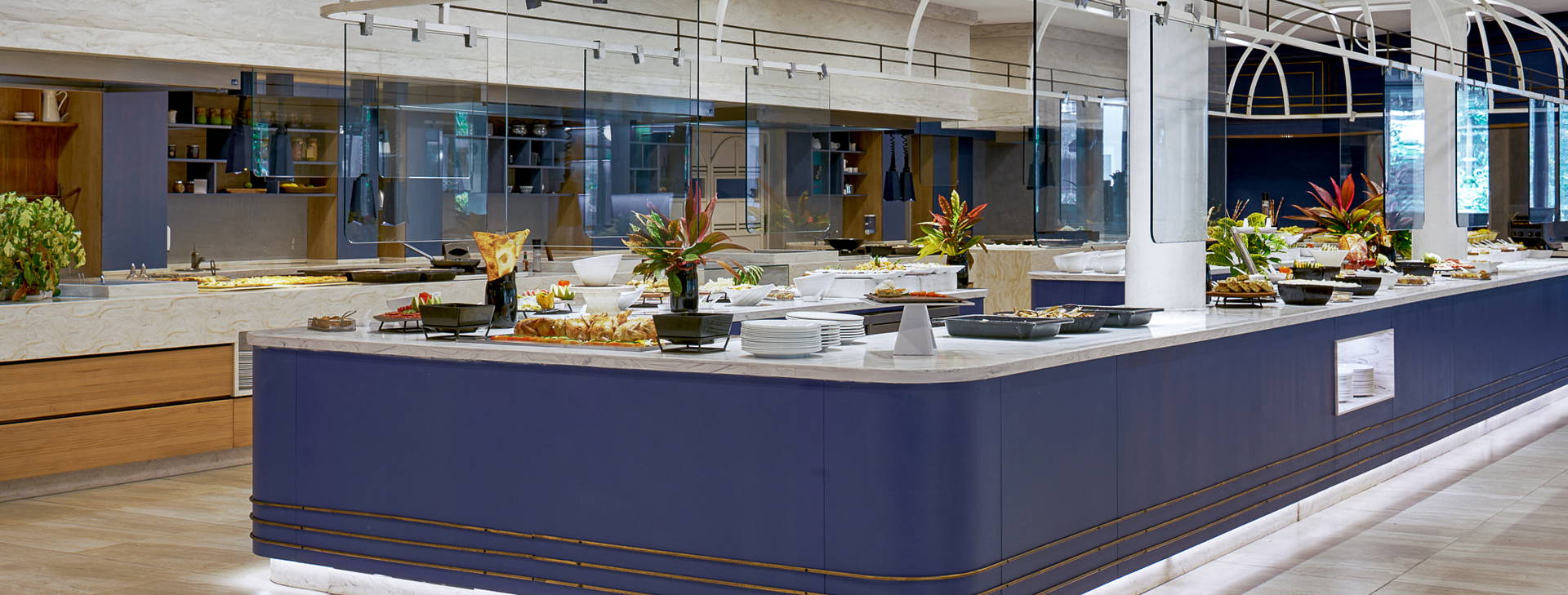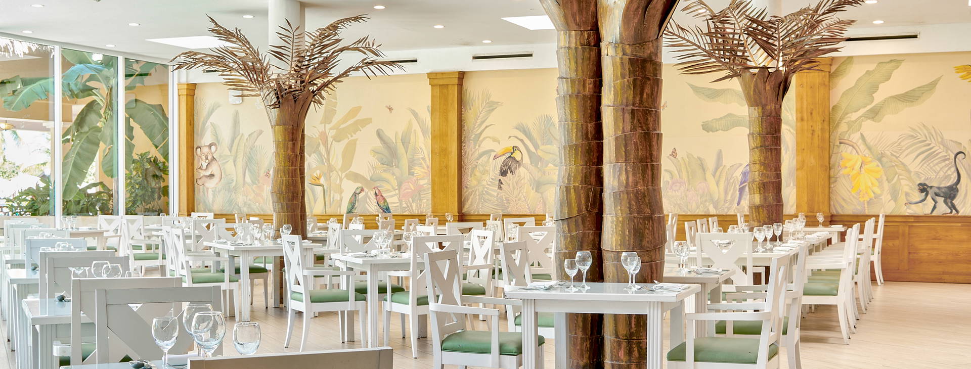All Inclusive: raňajky (07:00-10:00), obed (13:00-15:00) a večere (18:30-22:00) - sú podávané v bufetovej reštaurácii, v tematických a'la carte reštauráciách je nutná rezervácia vopred, občerstvenie (10:00-18:00), miestne i medzinárodné alkoholické a nealkoholické nápoje vo vybraných baroch v areáli hotela a v bare na pláži. Možno bezlepková a vegetariánska strava.