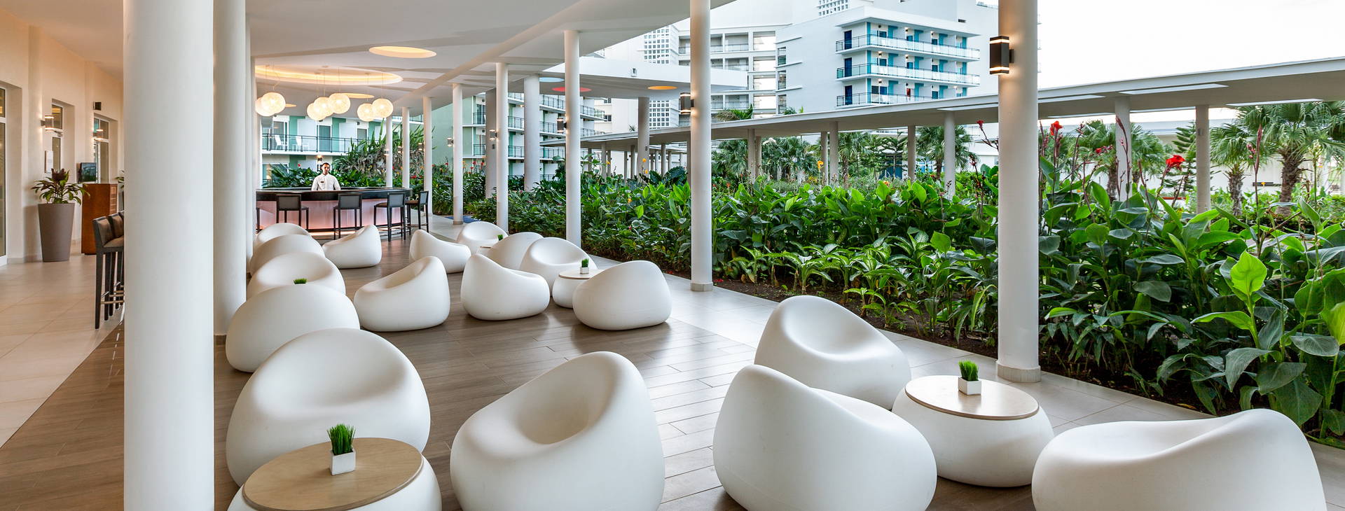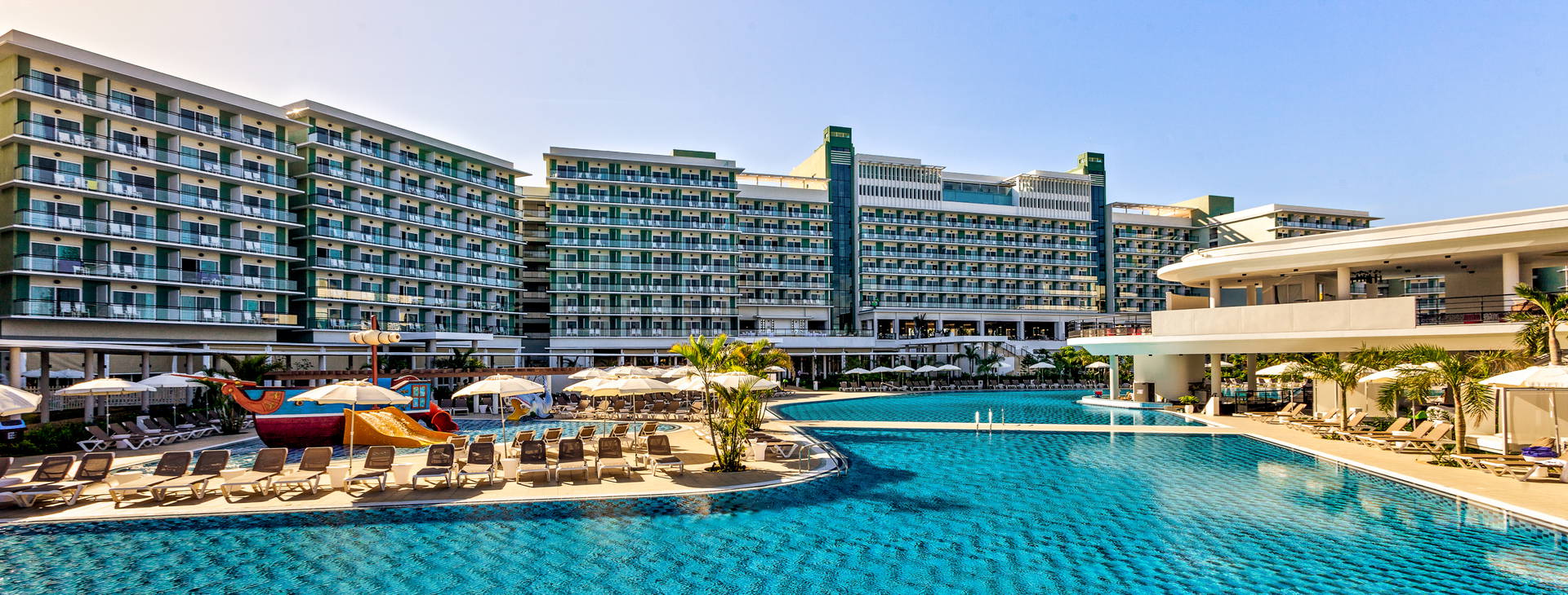 Lobby recepce, 14 restaurací - včetně bufetu a a'la carte (servírující mimo jiné mezinárodní, mexickou, středomořskou a italskou kuchyni), 19 barů (včetně 2 plážových barů), sluneční terasy v tropické zahradě, lehátka a slunečníky u bazénů, 5 bazénů (z toho 1 pro děti), miniklub pro děti, dětské hřiště, hlídání dětí (na vyžádání a za poplatek), obchod se suvenýry, směnárna, úschovna zavazadel, půjčovna aut, parkování.