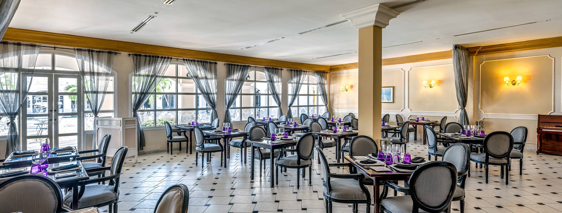 All Inclusive: raňajky (07:30-10:30), obed (13:00-15:00) a večere (19:00-22:00) v hlavnej reštaurácii vo forme bufetu. Štyri reštaurácie a'la carte (nutná včasná rezervácia): karibská, talianska, francúzska, kubánska. Počas dňa je podávané ľahké občerstvenie. Nealkoholické a alkoholické nápoje (vrátane dovozových) sú podávané v celom areáli hotela neobmedzene.