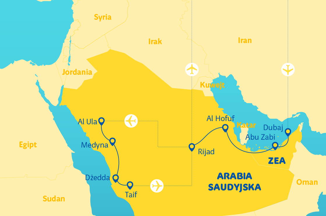 Název zájezdu v polském jazyce: Intrygujący Półwysep Arabski