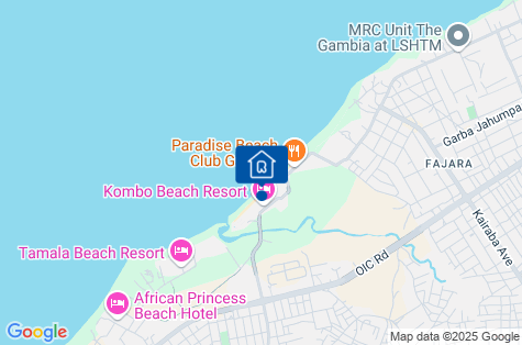 Hotel Kombo Beach sa nachádza v dedinke Kotu. Poloha hotela je priaznivá pre zaujímavé výlety v okolí (národný park Bijilo alebo krokodília farma - asi 20 minút jazdy autom). V okolí nájdete nákupné miesta, reštaurácie, stánky so suvenírmi. Transfer z letiska trvá približne 40 minút.