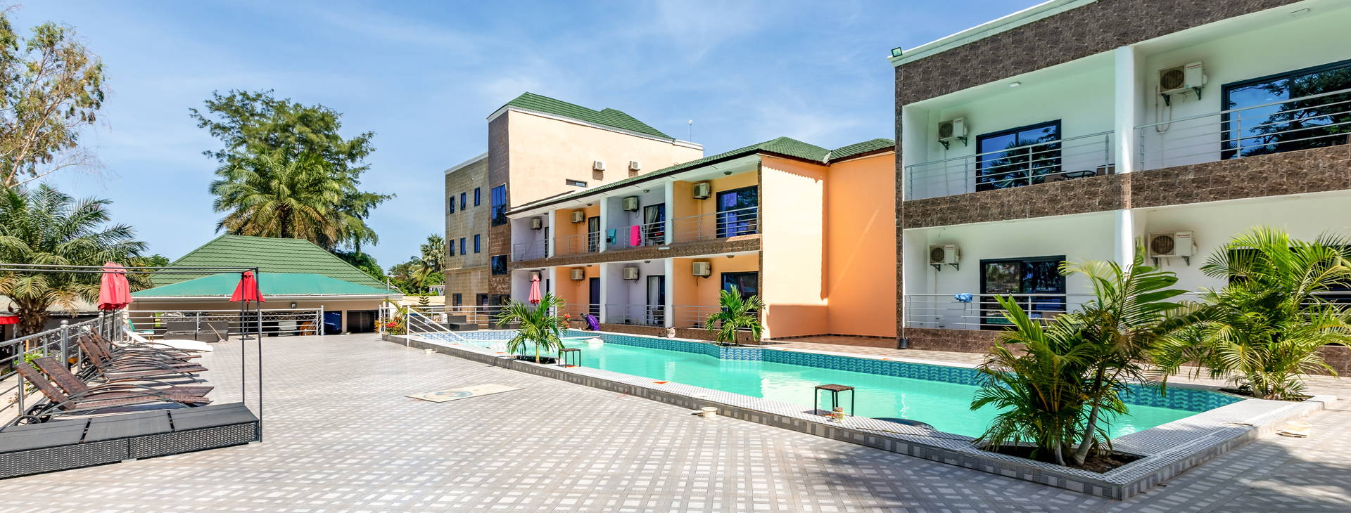 Moderný hotelový komplex (2018) sa nachádza v pokojnej časti pobrežia medzi najznámejšími turistickými strediskami v Gambii - Kotu a Kololi. Miestne obchody, reštaurácie a bary sa nachádzajú v pešej vzdialenosti od hotela. Hlavné turistické centrum oblasti - ulica Senegambia je vzdialená približne 1,5 km. 1 km. Pre milovníkov exotickej flóry a fauny sa v tejto časti pobrežia nachádza okrem iného národný park Bijilo (opice, mnohé druhy vtákov). Letisko Banjul je vzdialené približne 25 km.