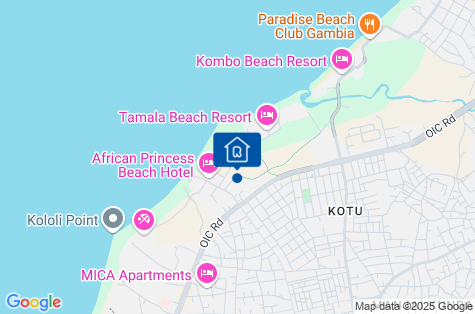 Hotel sa nachádza medzi dvoma letoviskami Kotu a Kololi. V krátkej vzdialenosti od hotela nájdete množstvo klubov, barov a reštaurácií (vrátane známej miestnej diskotéky Poco Loco). Vo vzdialenosti 3 km sa nachádza 18-jamkový golfový klub. Najväčšie mesto Gambie, Serrekunda, je vzdialené približne 6 km.