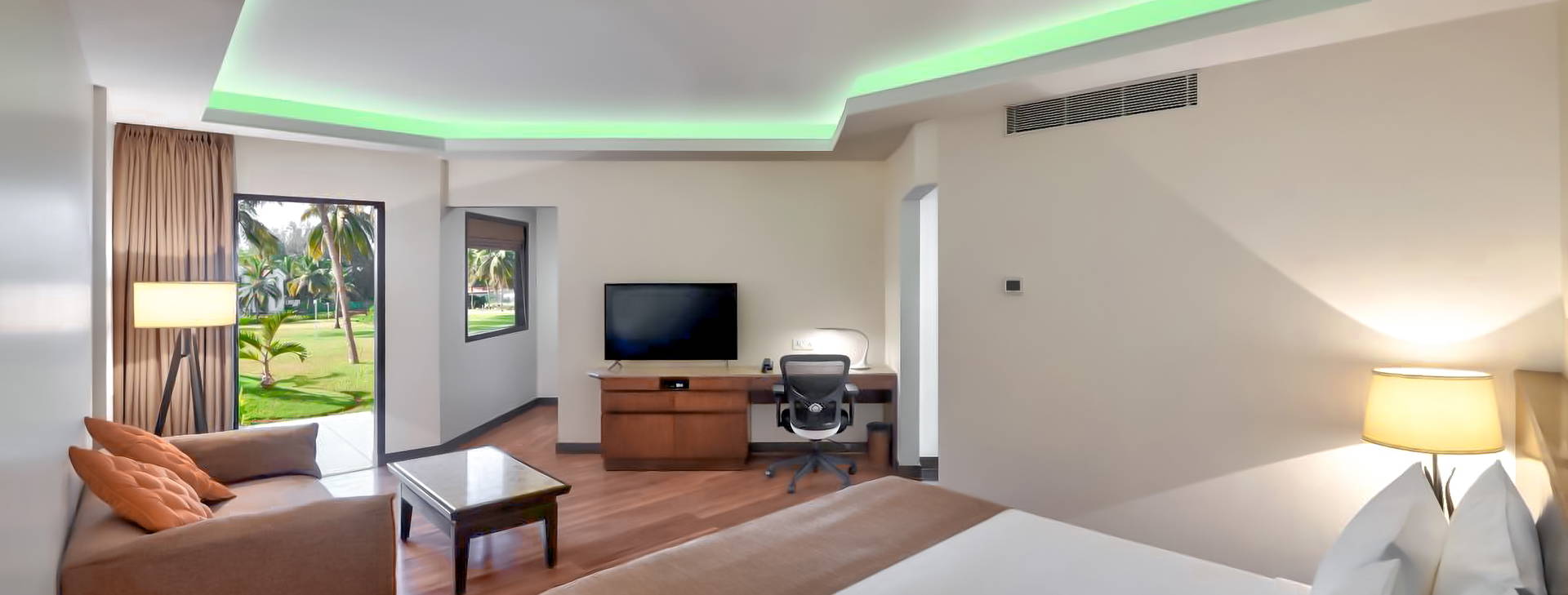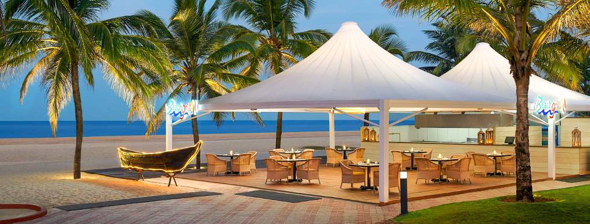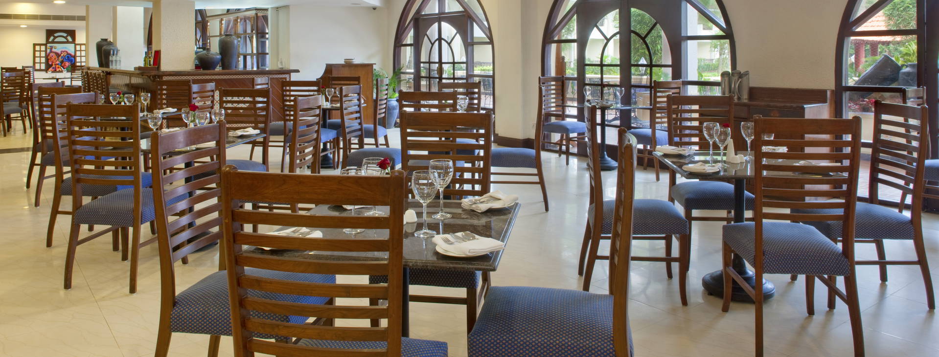 Hotel má 24-hodinovú recepciu, zmenáreň, výťah, 3 reštaurácie: hlavnú reštauráciu Fig a Olive pri bazéne, ktorá podáva jedlá medzinárodnej a miestnej kuchyne, sezónnu reštauráciu Beach Rill pri pláži a kaviareň Zest (24 hodín denne), ktorá podáva jedlá goanskej kuchyne a a'la carte, a lobby bar. Hotel má veľký bazén nepravidelného tvaru s oddelenou detskou časťou - ležadlá, slnečníky a osušky sú pri bazéne k dispozícii zadarmo. Za príplatok: salón krásy, 24-hodinová izbová služba, práčovňa, lekár, služba opatrovania detí.