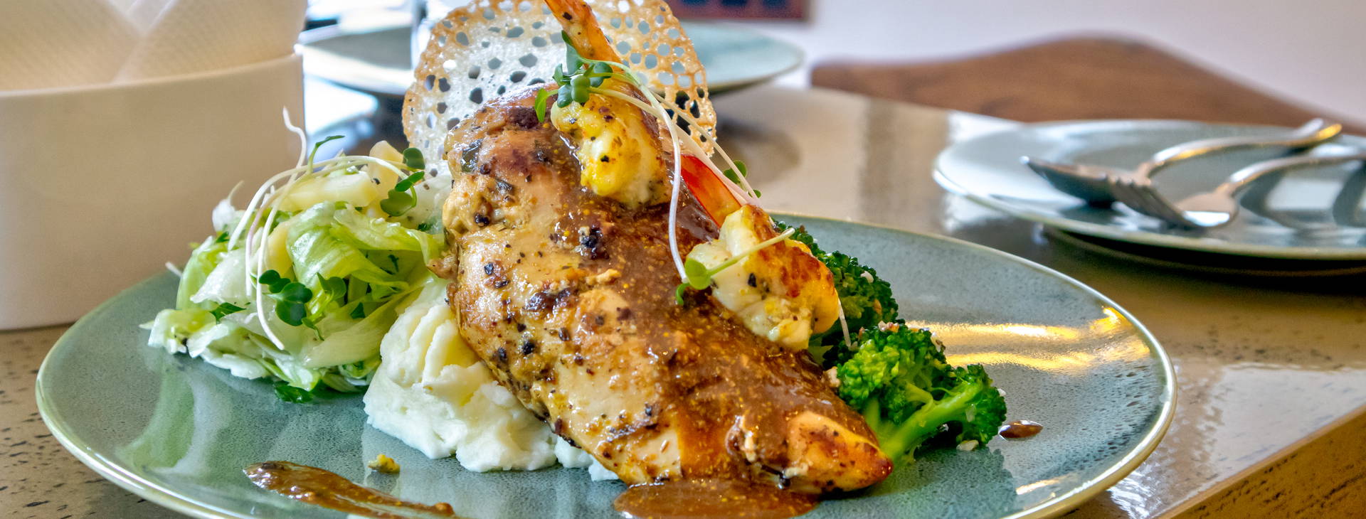 Pestrý raňajkový bufet sa podáva od 7:30 do 10:00. Bar Kazimo (otvorený od 11:00 do 23:00) a reštaurácia Kyma by the River (rezervácia nutná, otvorené od 7:00 do 23:00) sú k dispozícii za príplatok.