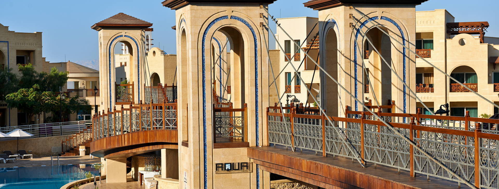 .Hotel postavený v podobe prázdninovej dediny so svetlými, elegantnými interiérmi. Svojim hosťom ponúka: Recepcia s nepretržitou prevádzkou, lobby, 8 výťahov, široký výber reštaurácií a barov (niektoré za príplatok): Reštaurácie: hlavná reštaurácia Ambrosia (medzinárodná kuchyňa podávaná formou bufetu), reštaurácia Burj Al Hamam (libanonská kuchyňa), reštaurácia El Grito (mexická kuchyňa), reštaurácia Promenade a lobby bar Rabbel a bar pri bazéne Aqua. K dispozícii sú 2 bazény - jeden, "The Lake" zaberá približne 5500 m2 v centrálnej časti hotelového areálu, druhý typu "infinity", je určený len pre dospelých. Pre deti je k dispozícii samostatné zatienené detské brodítko (sezónne vyhrievané). Ďalšie zariadenia hotela: fitnescentrum, veľké wellness centrum s vnútornými bazénmi, úschovňa batožiny, práčovňa.