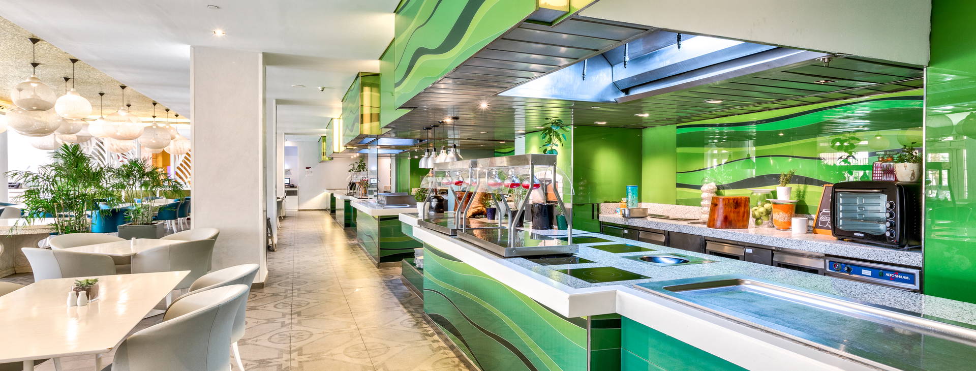 Raňajky formou bufetu (06:00-10:30). K dispozícii sú jedlá pre deti a špeciálne diétne jedlá (na požiadanie). Obedy a/alebo večere si môžete zakúpiť. Nápoje k jedlám a medzi jedlami za príplatok.