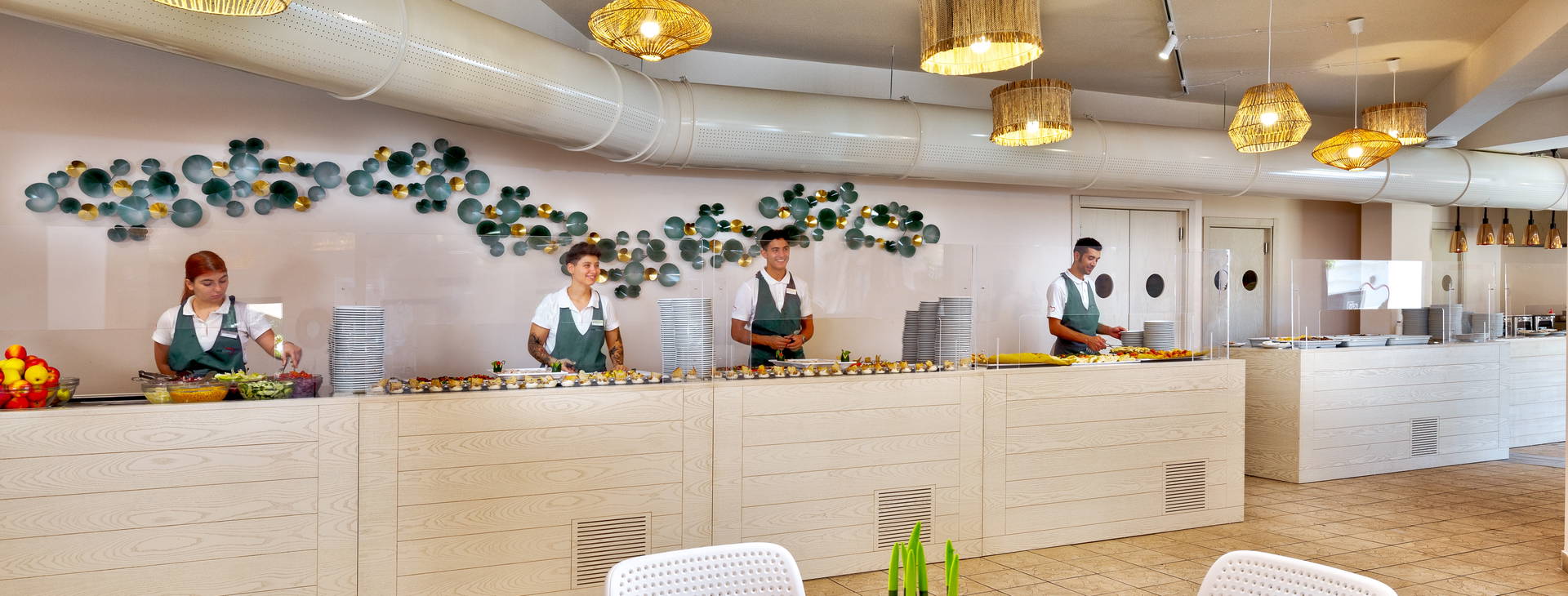 Hotel má hlavnú reštauráciu a bar. Raňajky a večere (možno vymeniť za obed) formou kontinentálneho bufetu sa podávajú v hlavnej reštaurácii, k jedlám sa podáva voda a nealkoholické nápoje. Podávajú sa aj bezlepkové jedlá. Plná penzia (raňajky, obedy a večere formou bufetu, voda, víno, nealkoholické nápoje k jedlám) je k dispozícii za príplatok. Raz týždenne sa koná slávnostná večera a tematická večera; rezerváciu stola si môžete urobiť pri príchode na mieste.