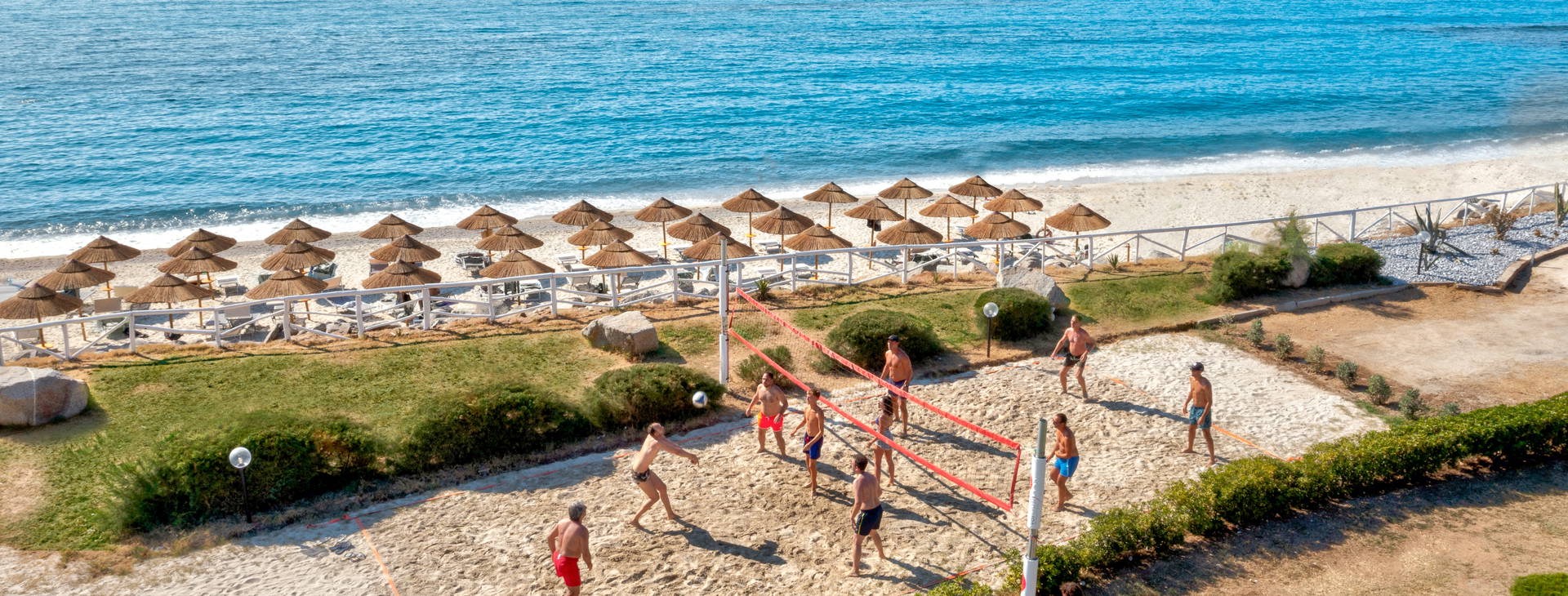 Biela piesočnato-kamienková pláž priamo pri hoteli (odporúčame obuv do vody). Ležadlá a slnečníky na pláži sú k dispozícii zadarmo (1 slnečník a 2 ležadlá na izbu). Uteráky k dispozícii zdarma (príplatok cca 2 EUR za výmenu uterákov). Pre hostí je k dispozícii bezplatná nabíjacia stanica (pre telefóny, slúchadlá atď.).