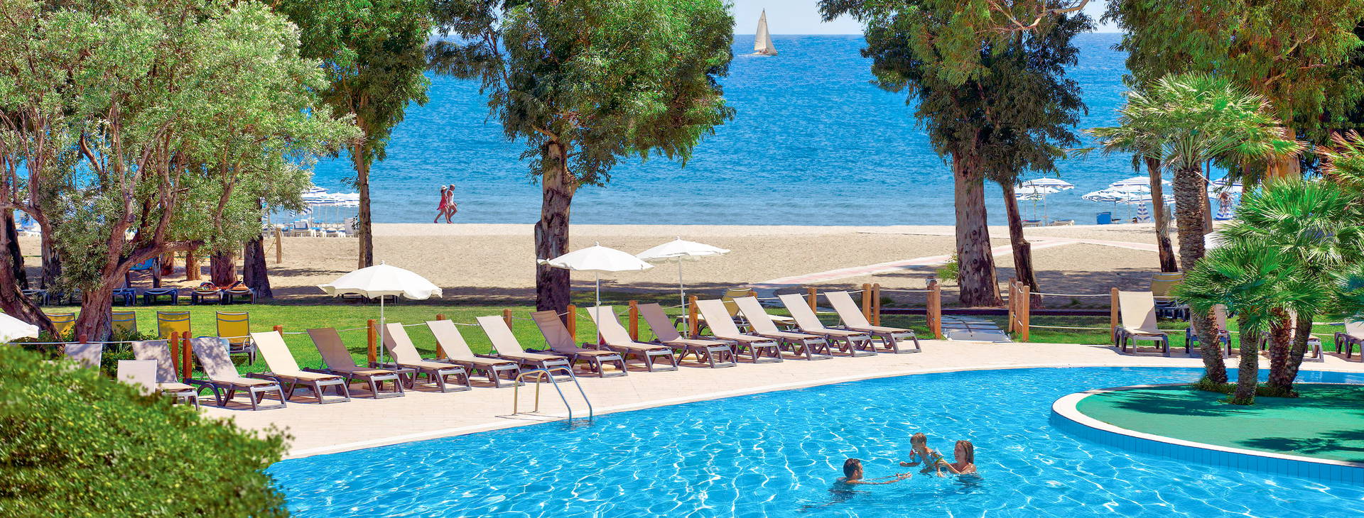 Hotel sa nachádza priamo na piesočnato-kamienkovej pláži (pozvoľný zostup do vody). Bezplatný plážový servis od 2. radu (2 ležadlá a slnečník/izba).