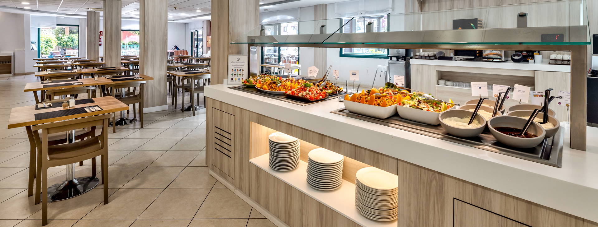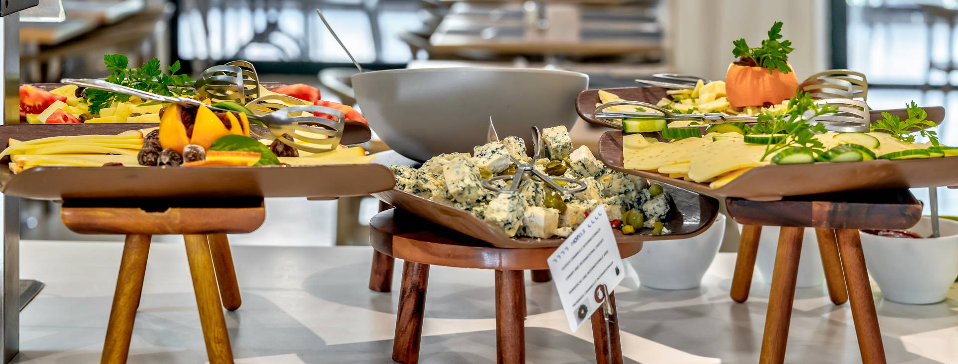 All Inclusive: raňajky (8:00-10:00), obedy (13:00-14:30), tematické večere (18:30-21:00) podávané formou bufetu. Občerstvenie a miestne alkoholické a nealkoholické nápoje (10:30-23:00) podávané počas dňa v určených baroch.