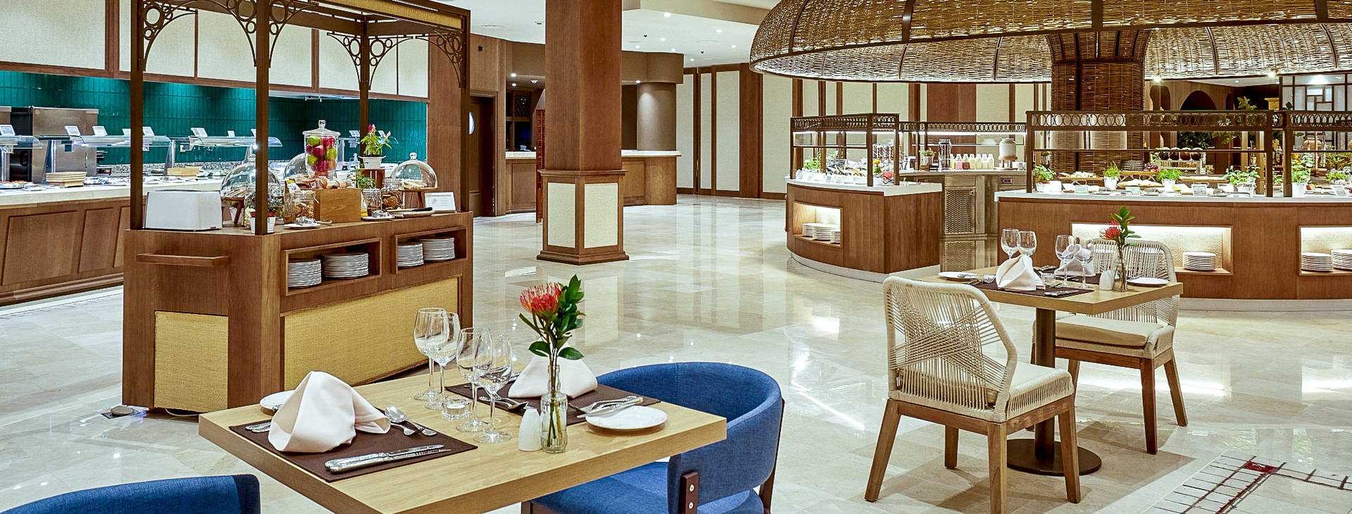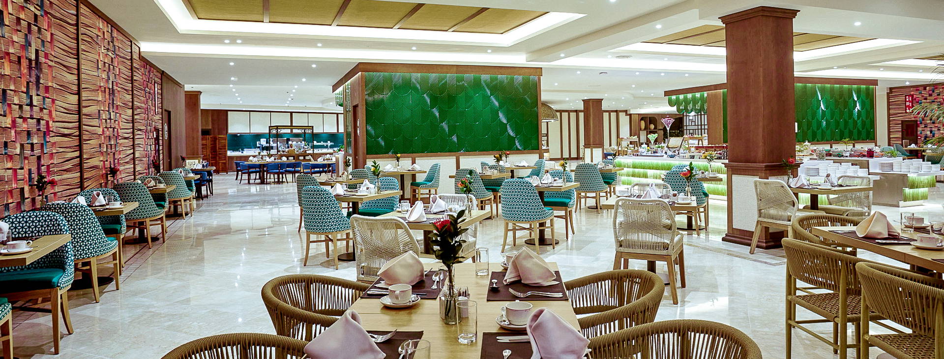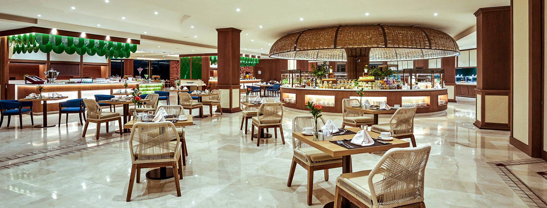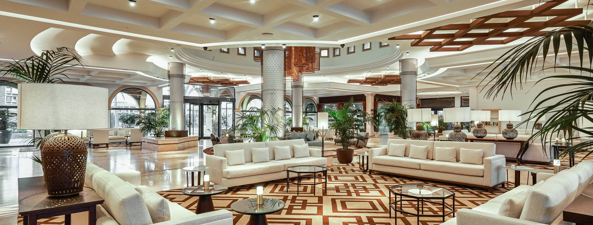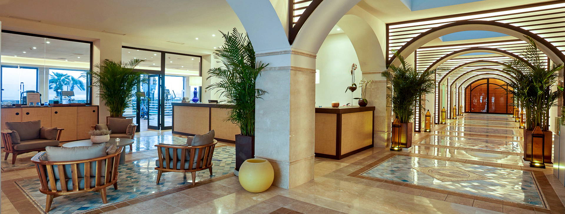 .Recepcia, pôsobivá vstupná hala s piano barom, výťahy, hlavná reštaurácia, 3 reštaurácie a'la carte (španielska, japonská a gurmánska), snack bar pri bazénoch, slnečné terasy v palmovej záhrade, 2 bazény nepravidelného tvaru (1 z nich v zime vyhrievaný, všetky so sladkou vodou), detské brodítko (vyhrievané), detské ihrisko, miniklub, služba opatrovania detí (za poplatok), butik, obchod so suvenírmi, práčovňa (za poplatok), úschovňa batožiny, parkovisko.