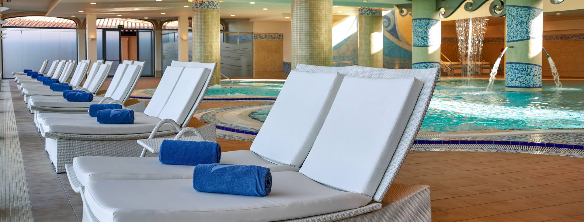 .Vital Spa Bahia (pre osoby staršie ako 16 rokov) - wellness zóna (v cene): vnútorný bazén s kaskádami a hydromasážnymi posteľami, parná sauna, fínska sauna, vírivka na terase, profesionálne vybavená a klimatizovaná posilňovňa, aerobik, joga, pilates, spinning, kickbox a fitball. Ošetrenia tváre a tela za poplatok.