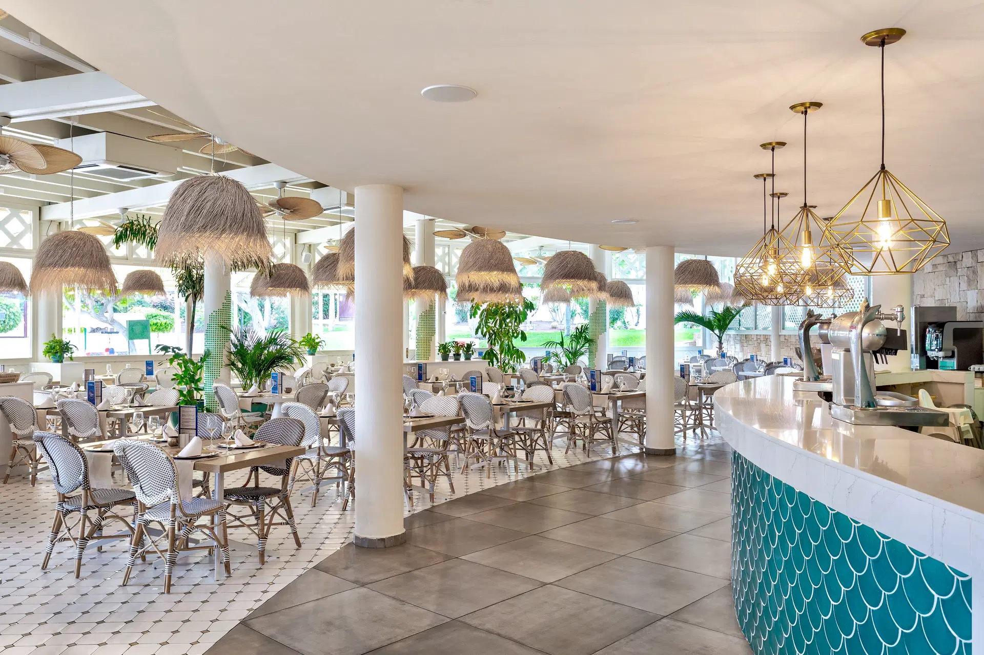 .Recepcia, lobby, hlavná reštaurácia, 2 tematické reštaurácie, 2 ďalšie reštaurácie pre hostí zóny Premium Club) 6 barov (z toho 2 pre hostí zóny Premium), 8 bazénov (vrátane 2 detských a 2 výlučne pre hostí zóny Premium, sladká voda v bazénoch, niektoré z nich celoročne vyhrievané), slnečné terasy s ležadlami a slnečníkmi, detské ihrisko, detské kluby (4-12), Teen Lounge (13-16) pre tínedžerov, práčovňa (za poplatok), úschovňa batožiny, obchod so suvenírmi, požičovňa bicyklov (za poplatok), tenisové kurty (za poplatok), parkovisko. Hotel poskytuje uteráky k bazénu (zdarma), výmena 1 x týždenne - zdarma. Počas ubytovania sa môže vyžadovať záloha kreditnou kartou alebo v hotovosti. Hotel kompletne zrekonštruovaný do roku 2018. Prémiová zóna Adults Only Club zahŕňa: 2 bazény, reštauráciu a bar pri bazéne, slnečnú terasu, chillout zónu s pohovkami a ležadlami, priestor s balijskými posteľami a prístup do reštaurácie La Scala (na večeru) a baru Scala.