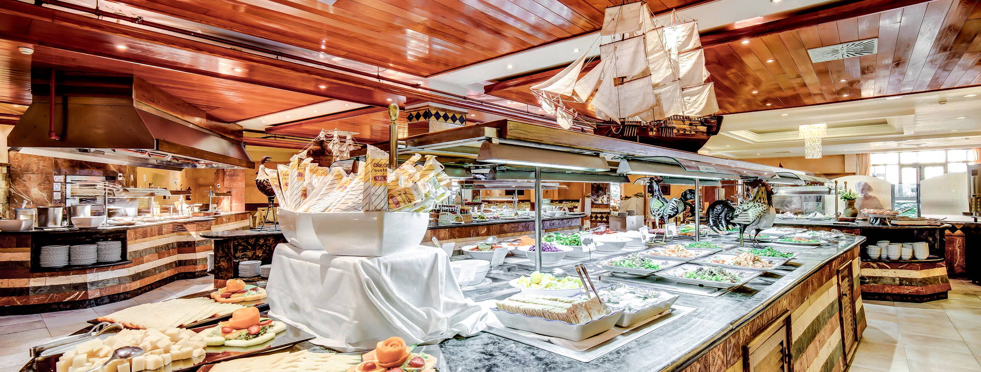 All Inclusive zahŕňa: raňajky (8.00-10.30), obed (12.30-14.00) a večeru (18.00-21.30) formou bohatého bufetu podávaného v hlavnej reštaurácii. Miestne alkoholické a nealkoholické nápoje sa podávajú v hotelových baroch (10.00-23.00). popoludní sa v baroch podáva občerstvenie - zákusky, káva, čaj, zmrzlina.