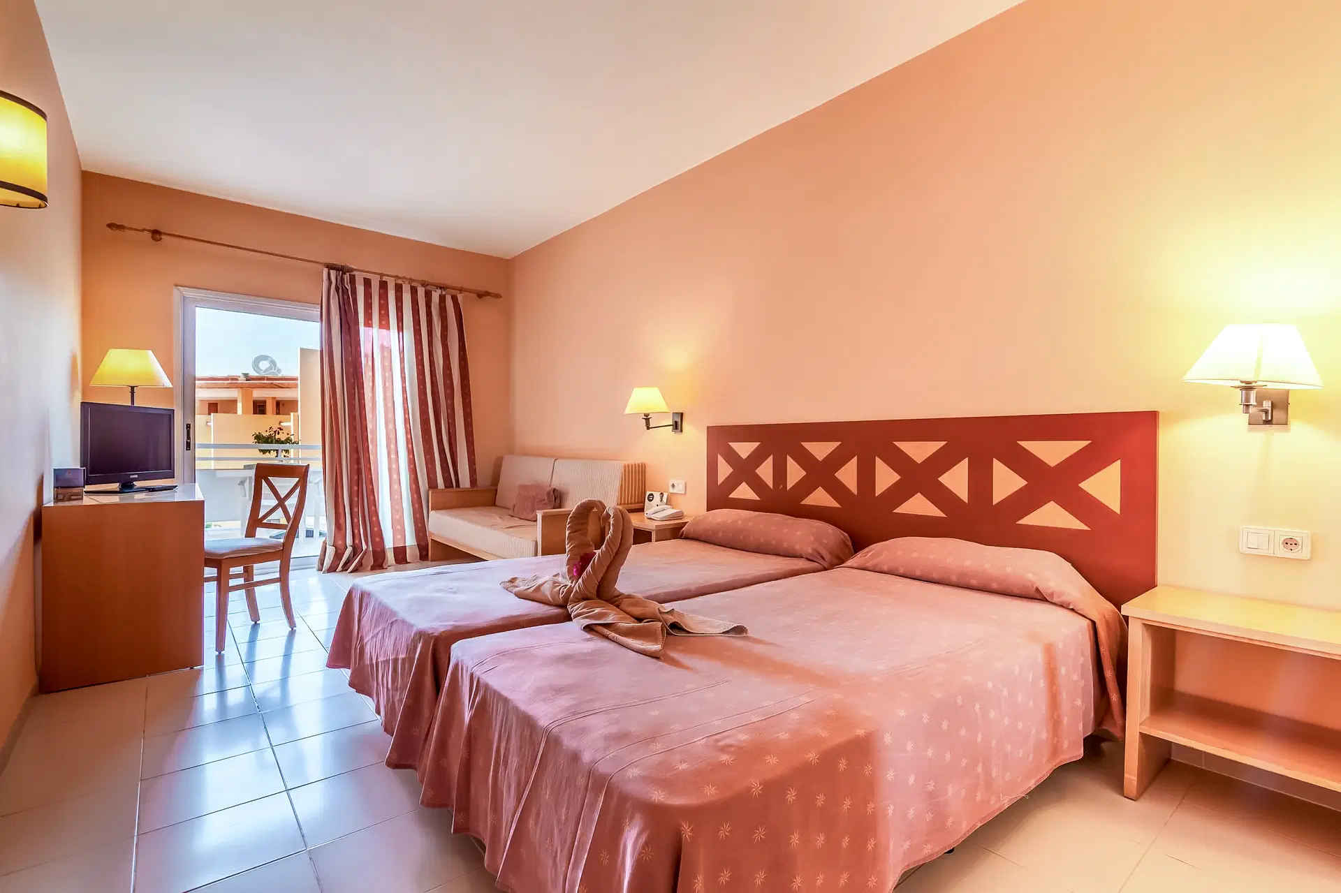 Veľmi pekný, rozsiahly a dobre udržiavaný komplex dvoch hotelov, celkom 5 bazénov (vrátane 2 detských bazénov), veľká a udržiavaná záhrada, vlastná pláž a pestrá a chutná strava. Izby nie sú najnovšie, ale infraštruktúra a poloha pri pláži to plne kompenzujú. Hotel poskytuje obľúbené animácie pre deti a mládež. Aktívnym návštevníkom odporúčame vodné športy, turistiku a cyklistiku (v Costa Calma je k dispozícii niekoľko požičovní bicyklov).