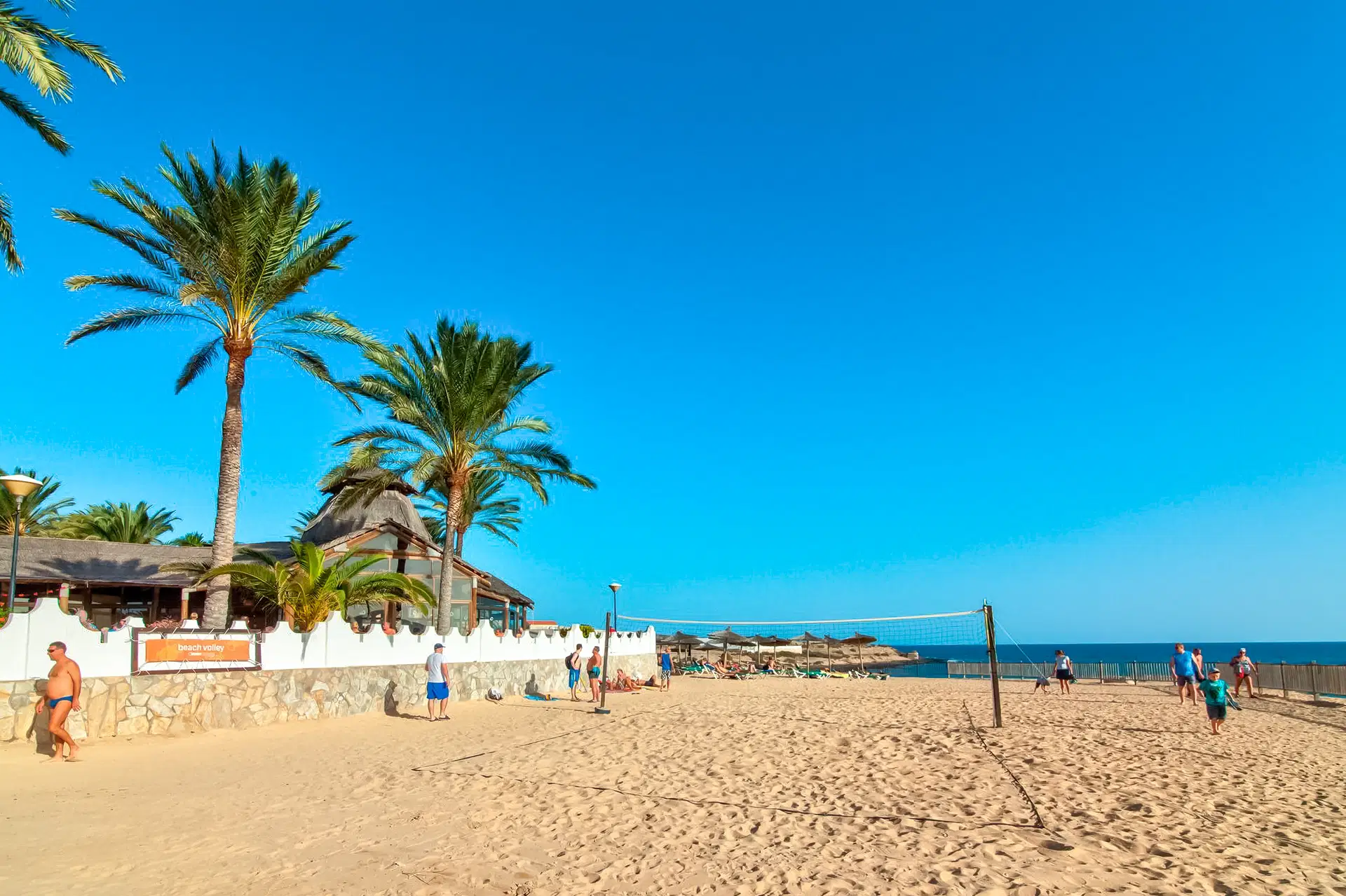 .Vonku hotela začína jedna z najkrajších pláží Fuerteventury, Playa de Sotavento, v úseku pri hoteli, skalnatým zostupom do vody. Ležadlá a slnečníky na pláži sú spoplatnené. K dispozícii je aj pláž v areáli hotela - ležadlá a slnečníky zdarma.