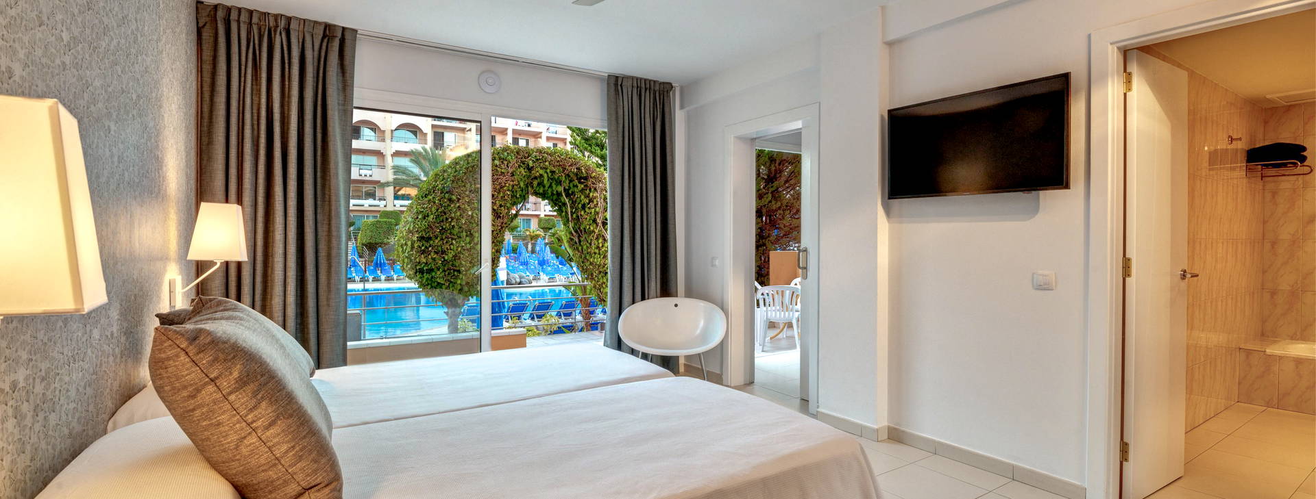 Recepcia s lobby, reštaurácia, bar a bar pri bazéne, slnečná terasa s ležadlami a slnečníkmi, 2 bazény (sladká voda v bazénoch, jeden z nich vyhrievaný od novembra do apríla), vírivka, detské brouzdalište s pirátskou loďou pre najmenších (voda v detskom brouzdališti vyhrievaná od novembra do apríla), detské ihrisko, miniklub, opatrovateľka detí (za poplatok), práčovňa (za poplatok), požičovňa áut. Hotel poskytuje uteráky k bazénu (za poplatok: cca 1 Eir/deň + záloha cca 10 Eur).