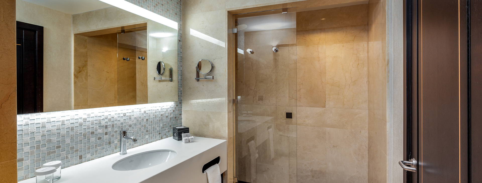 .Recepcia, vstupná hala, výťahy, 3 bufetové reštaurácie, 3 reštaurácie a'la carte, 5 barov, záhrada, slnečné terasy s ležadlami a slnečníkmi, 4 bazény a detské bazény (sladká voda v bazénoch, 2 bazény a detské bazény v zime vyhrievané), vírivka, miniklub, detské ihrisko, konferenčné miestnosti, práčovňa (za poplatok), lekárska starostlivosť (za poplatok), parkovisko (za poplatok). Hotel poskytuje uteráky k bazénu (zdarma, výmena cca 1,5 Eur/uterák).