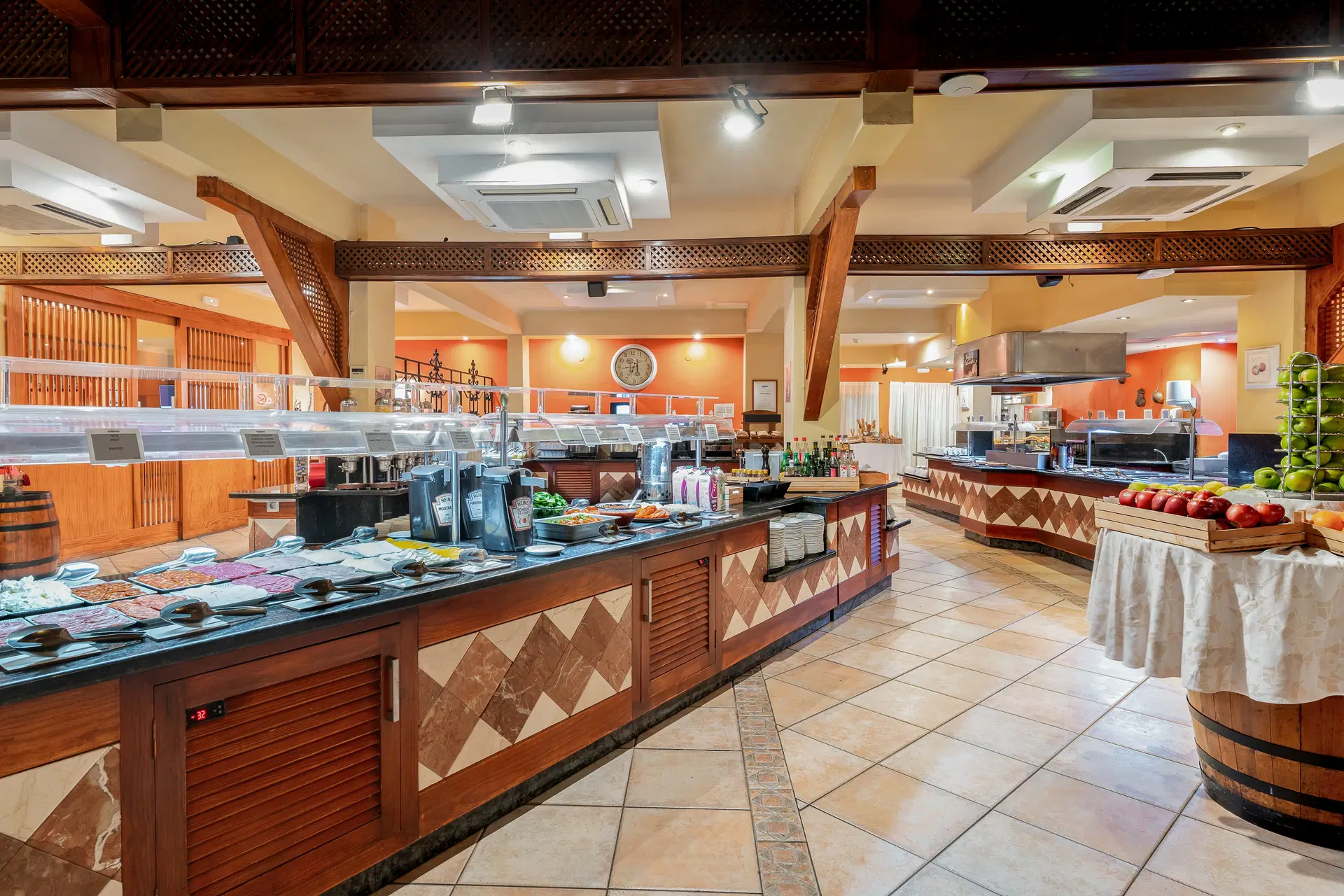 .Raňajky a večere formou bufetu. Nápoje k jedlám sa platia extra. Občerstvenie podávané v bare pri bazéne od 11:00 do 17:00 (za príplatok).