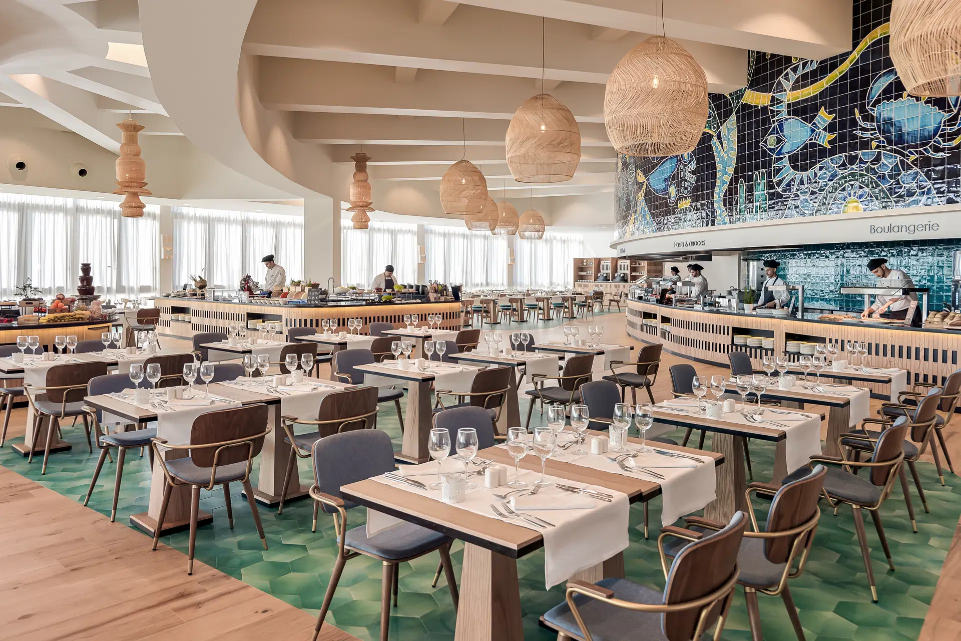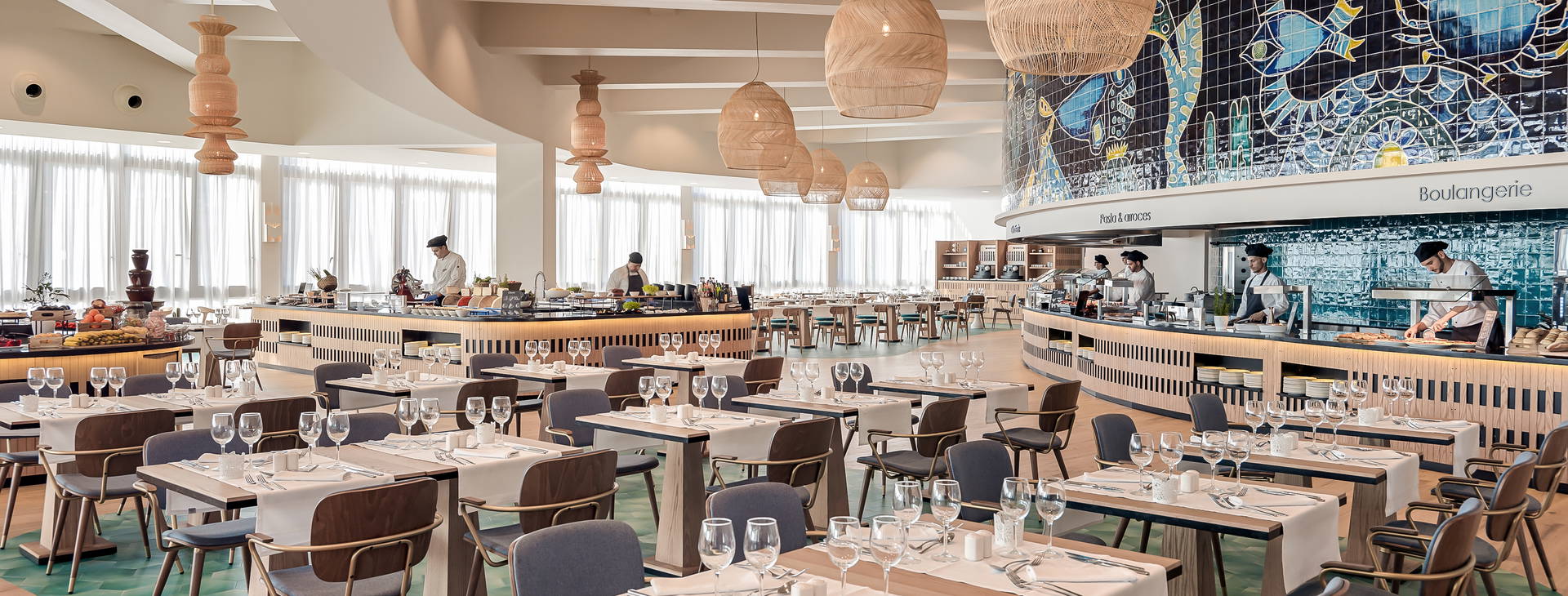 .Raňajky (7:30-10:30) a večere (19:00-22:00) formou bufetu, možnosť príplatku za all inclusive deluxe: raňajky (7:30-10:30), obed (13:00-15:30), večera (19:00-22:00), občerstvenie v bare (11:00-17:00):Neobmedzené množstvo nealkoholických nápojov (káva, čaj, voda, šumivé nápoje, džúsy) a miestnych alkoholických nápojov (pivo, víno, vodka, whisky, gin, vrátane niektorých nápojov a niektorých dovážaných liehovín) 24 hodín denne 7 dní v týždni, tematický bufet niekoľkokrát týždenne, živá kuchyňa. Hotel si vyhradzuje právo na zmenu času podávania.
