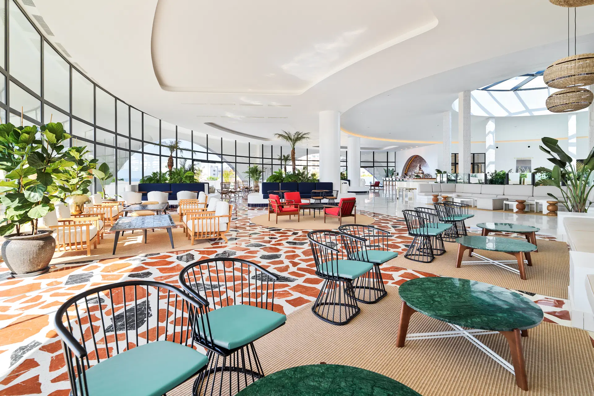 Recepcia s priestrannou vstupnou halou, výťahy, hlavná reštaurácia, reštaurácie a'la carte (talianska a ázijská, BBQ - otvorené sezónne), bary (vrátane dvoch pri bazénoch a jedného otvoreného sezónne - na streche hotela), kaviareň, 3 bazény (s morskou vodou, 3 vyhrievané, nekonečný len pre dospelých), detské brodítko s vodným ihriskom, miniklub, slnečné terasy so slnečníkmi a ležadlami, parkovisko (za poplatok). Hotel poskytuje uteráky k bazénu (zdarma). Hotel akceptuje domáce zvieratá do 5 kg (za poplatok približne 10 eur/deň) - na základe predchádzajúceho oznámenia a potvrdenia.