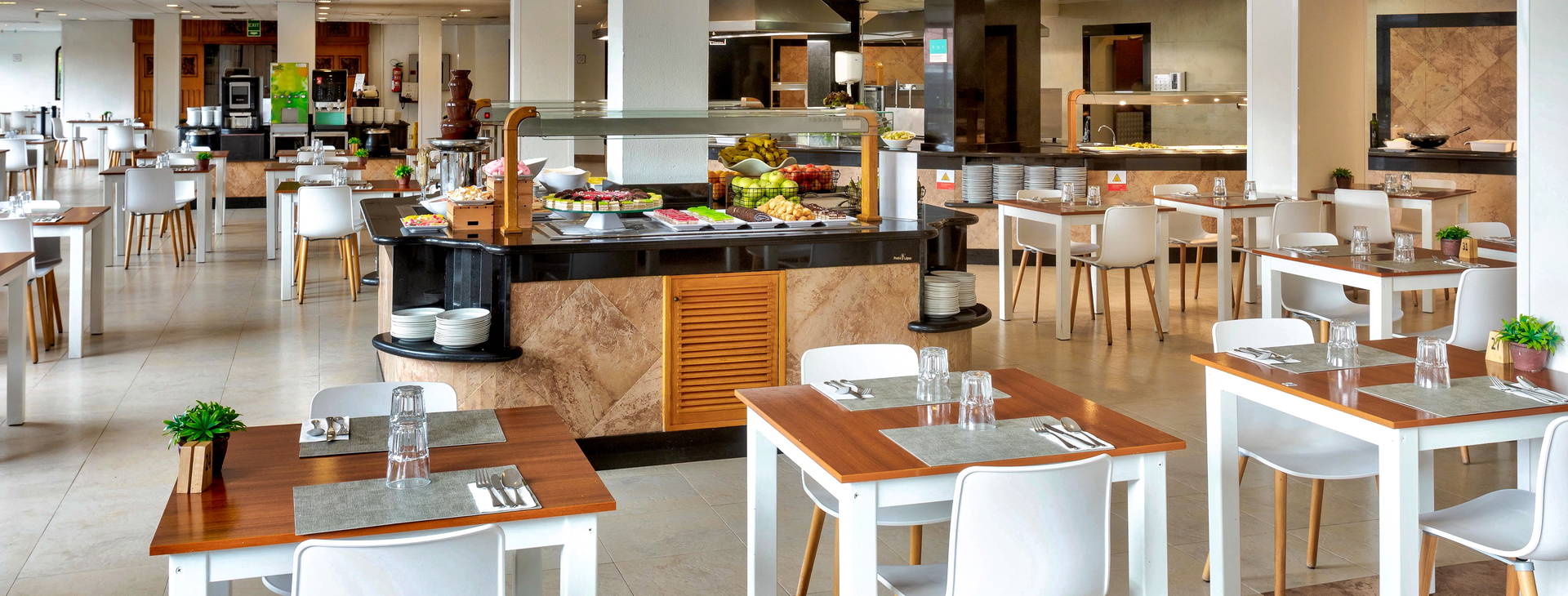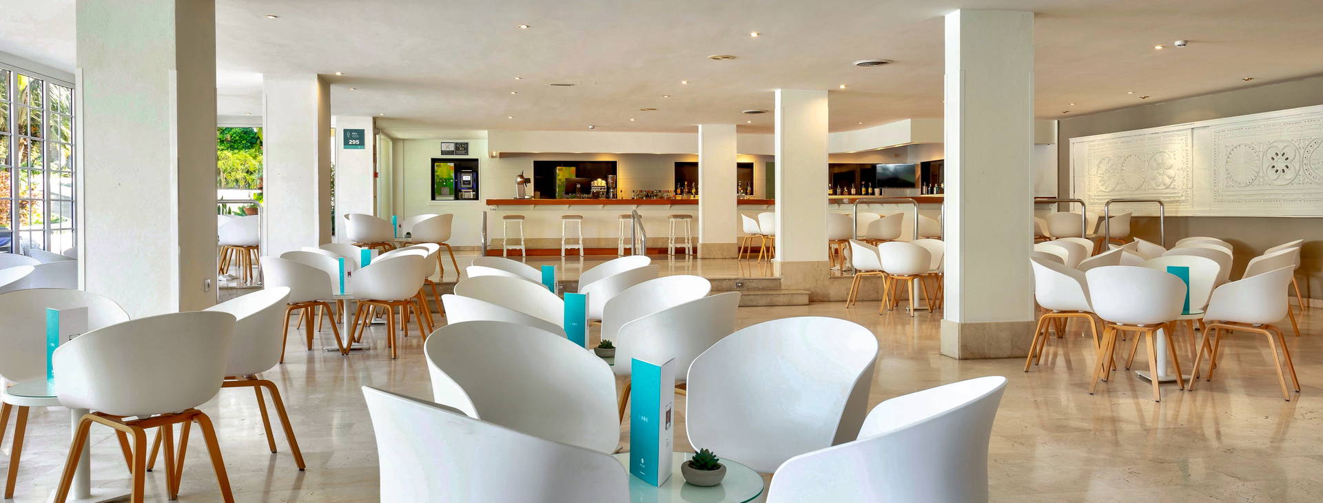 Recepcia, výťahy, slnečná terasa s ležadlami a slnečníkmi, bazén, detské bazény, 2 bary vrátane baru pri bazéne, bufetová reštaurácia. Za príplatok sú k dispozícii služby prania a žehlenia a prístup do dvoch školiacich miestností.