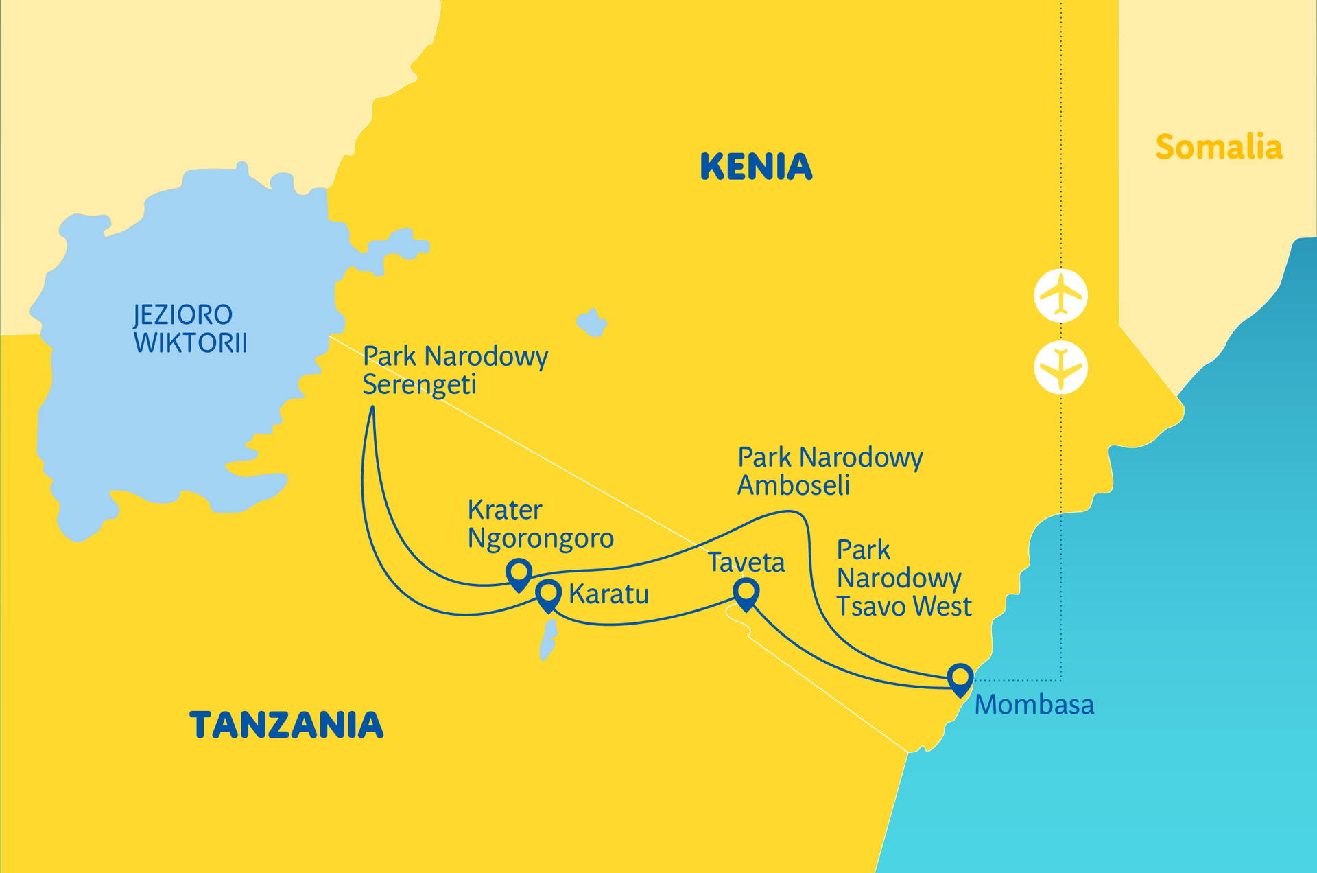 Název zájezdu v polském jazyce: Kenia i Tanzania